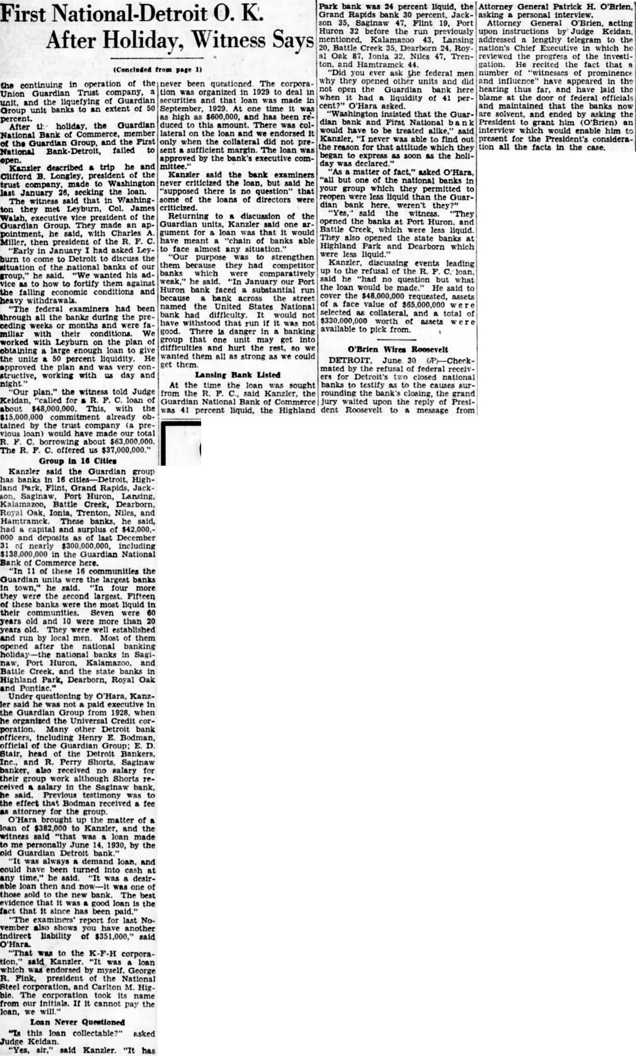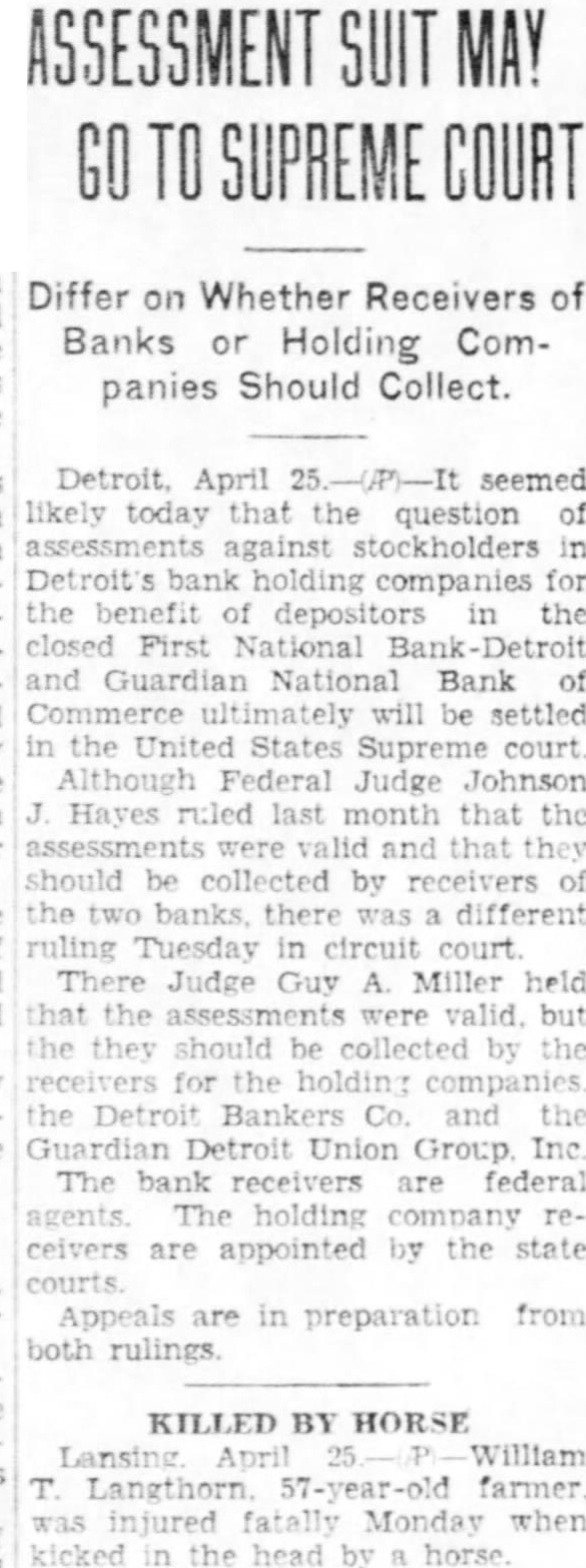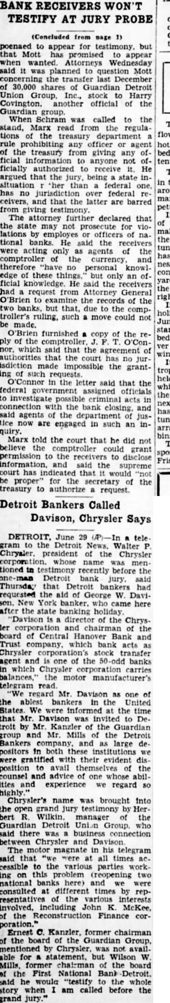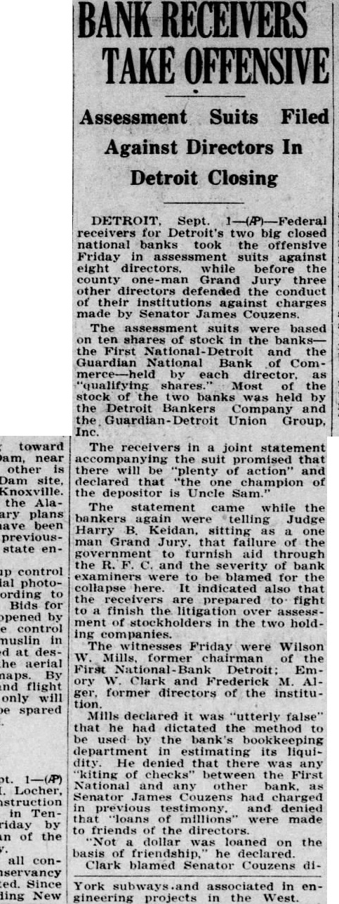 Henry Ford Gives An Interview About Situation Banking Still Insists There Should Be Two Kinds of Banking -In One Depositors Would Ask No Interest and Money Would Not Be Loaned - Second One Would Require Interest and Loans Could Be Made vised me. We are ready to proceed BY JAMES C. AUSTIN provided they can do as they (Copyright 1933 by United Press) agreed. Detroit, Mar 2-Henry Ford enwant to make my position tered the Detroit banking situaclear. I was not keen about going tion because of insistent urging into the banking business. I am of bankers' representatives and bean automobile manufacturer. My cause of a conviction that simpliposition and my ideas regarding fied bankings needed in America banking are well known. But when He felt that he would be able to I was repeatedly asked to create help iron out what he believes these new banks I decided to do are some of the wrinkles in the so. If obstacles develop. if condinational banking fabric. tions change or attitudes are Ford made clear his views on switched, I still retain my posithe Detroit and on the national tion. I stand for a balanced bankbanking situation in an interview ing situation in Detroit. My interwith the United Press. est in seeing that such a position His banking theory is based on a is maintained in Detroit will rebelief that there should be two main unabated regradless of what kinds of banking. may arise tomorrow or later in reIn the first depositors would put gard to my plan to establish two their money in the bank for sernew banks in this city. vice and safe-keeping. They would Commercial Detroit frankly repay a small sum to the bank for garded the situation as one in the service and receive no interest. which the old line eastern bankThe banker would not lend the ing interests, the so-called "Wall money. street banks' are bitterly fighting The second would be for deposito prevent Ford from becoming tors who desired a return on their the dominant banking power of money. Such a bank would lend to the Detroit area. productive enterprises. 'America needs simplified bankHe hoped to put these theories ing' said Ford. During what I into practice in Detroit; a hope he call the crozy age in America when has not abandoned despite the fact all sense of values was distorted that even while he was talking in the scramble to get money by to the United Press representaspeculation and not by work, too tive, authoritative word was gomany banking directorates were ing around that those in control of apparently selected on a country the First National Detroit bank, club basis and vice-presidents on one of two which Ford on Sunday their strength as social assets. agreed to take over, would ask toBanking needs men and has alday to be released from their ways needed men with the keenest agreement. sense of the social responsibilities This word came after Senator of their position. James Couzens, Ford's old business "Banking is not a business in partner, had conferred with bankwhich great financial returns can ers and then for two hours or more come to the bankers. Banking is had talked with Ford. The actua service. The minute a bank is ating cause of the changed plans primarily run to make money it of the First National Detroit group becomes a poor bank just as the was not clear. A strong element in minute that a great surgeon bethe directorate, however, is known comes obsessed with a desire to to from upon the Ford plan. make large sums of money out of Ford, looking much thinner than his proefssion he becomes distinctusual, his tanned face contrasting ly a poor surgeon. with the silver grey of his hair, reiterated that he had not receded "Money, by itself was not the from his original position with recause of depression. Money is not gard to taking over the banks. enough. The depression came because of our state of mind: out of "During the last week representatives of two big Detroit banks the fact that thousands of people came to me not once, but three had come to believe that the way times, and stated that it was imto make money was through possible for them, under the condiplunging on stocks or commodities tions imposed, to reopen the closed instead of producing the goods and banks," he said. creating wealth by work. I "Then after an investigation "I'm not opposed to the sooffered to do what was demanded called Wall street banker or to I and organized two new banks. Wall street. In many ways in my made the offer and it was accepted. judgment their services are reWhen I made it I made my posiquired. They are in a way the scavtion clear and I indicated as exengers of commerce. When a concern gets out of date or ineffiactly as I could the nature and the I character of the banks that cient in its management they go would operate. to these banks for relief and they "They would be banks for the clear them up and get rid of them. people and banks for the assistSome times money is lost in the ance and aid of productive busiprocess but that is generally specness. If there is any desire on the ulators' money. They were ready part of any of the banks involved to take a speculative chance in to withdraw from their acceptance the proposition. The definite benefit is that the field has been cleared of my offer they have not so adup and the commercial debris removed. Sometimes suckers are or replacing old ones. There may caught and by that process gain an be no immediate need for funds for experience that's invaluable to such purposes but the city wishes them later on. to be prepared for emergencies. He "We are going to have to change cited the Platts Mills bridge as an radically our attitude toward monexample. A new bridge was supey and its function in our composed to be built there, but demercial life and toward banks. crease in heavy traffic over the "I believe that there should be structure to and from the Bristol a type of bank that is purely for Company has caused postponesavings in which money is depositment of action. Mayor Hayes also ed w