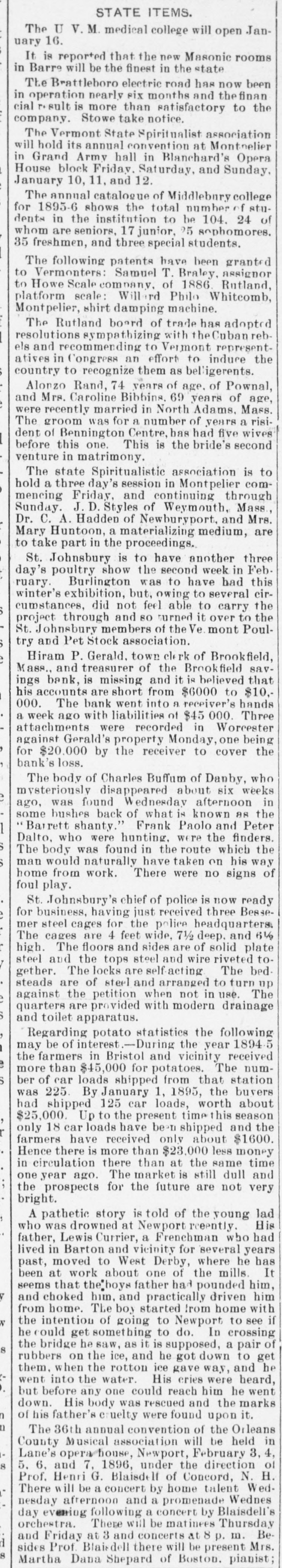 THE WEEK'S NEWS. THURSDAY, APRIL23. Anti-McKinley men pleased with yesterday's conventions-Republican caucus at Rutland, Vt., unanimously for McKinley-Captain Sargent of the Cramp company thinks the Massachusetts a faster ship than the IndianaDedication of the Malden (Mass.) Y. M. C. A.'s new building-Murderer Colombe of New Haven sentenced to life imprisonment - Brookfield (Mass.) Savings bank depositors will get dividend of 30 per cent-Trial of Mr. and Mrs. Kilham on charge of false imprisonment of a child begun in Lynn, Mass-Receiver to turn the plant of the Denver Paper Mills company over to a new corporation-Contest over the will of the late Dr. Fred H. Hoadley at New Haven-Fallure of the American National bank of Denver-Two Chinamen held at Worcester, Mass., for as. saulting two girls-Arrival of another large batch of Italian immigrants at New York-While fighting. James Kielty was pushed in front of a train and terribly injured at Lancaster, Mass -Suit of prominent Manchester (N. H.) citizen against the electric light company of that city dismissed— Philadelphia street railway men may strike-Hon. Francis Jewett of Lowell, Mass., is dead-Paderewski has given $10,000 to establish a prize fund for American composers-The New York assembly passed the Greater New York bill over the vetoes of Mayors Strong and Wurster—Report that Lord Salisbury has rejected the proposition of the United States in the Venezuelan caseFrank C. Smith, charged with forging checks, did not appear when his case was called in Boston, because he is in a New Jersey jail. FRIDAY, APRIL 24. Bates college won the silver laurel wreath trophy in its debate with Boston university-Pennsylvania Republican convention declared for protection, reciprocity, the gold standard, and Quay -Joseph Chamberlain makes a statement that the Transvaal government is corrupt-Unterhause of the Austrian diet rejected a universal suffrage scheme -Trial of Dr. Moore postponed and jury discharged because of objectionable comments in newspapers-Indian a: propriation bill, carrying over $9,000000, passed by the senate-Admission of women as lay delegates to Methodist general conference defeated by a close vote-International arbitration conference at Washington adopted resolutions to be presented to the president, and Republicans declared for McKinley-Congressman Taylor construes the Ohio platform to mean sound money, as opposed to free coinage at 16 to 1--Ambassador Bayard unveiled a window in the Shakespeare church at Stratford, Eng— Ex-Secretary of the Navy Whitney thinks ex-Governor Russell would 11 ake a good presidential candidateMemorial to the late Jesse Seligman unveiled at New York Hebrew orphan asylum-Two men stabbed in a fight at Fall River, Mass-Two Lawrence (Mass.) mills to reduce running timeConnecticut supreme court found no error in the habeas corpus proceedings of Dr. Whitten - Child fatally poisoned by dogberries at New Haven-Big school of whales around Cape Cod— Norcross Bros. got the contract for building the Worcester (Mass.) city hall -John McKenna, who shot his wife at Franklin, Mass., sent to jail - Probability that a new cotton mill will be built at Fall River, Mass-Rev. T. J. Lee of Newark accused of plagiarism— Syndicate to buy out the Cataract General Electric company-Senator Call intends to ask the president to send ships-of-war to Cuba - Proposed scheme to stamp weather forecasts on letters will not be adopted in BostonDaniel Chester French, formerly a Boston sculptor, to erect a statue of George Washington at Paris-Will of Thomas T. Wyman of Boston, giving more than $500,000 to public institutions, to be contested by his relatives. SATURDAY, APRIL 25. Winthrop W. Crane a candidate for Republican nomination for lieutenant governor of Massachusetts-Cuban junta engaged the swift "knife craft" Howard Cassard for a blockade runner --Treasury net gold reserve stands at $125,515,371-Grand Forks National bank. Grand Forks, N. D., falledDeath of George Munroe the