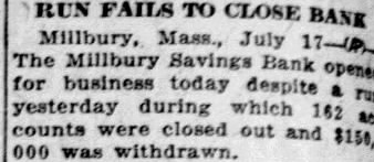 SHORTAGE CAUSES MILLBURY BANK RUN