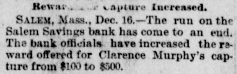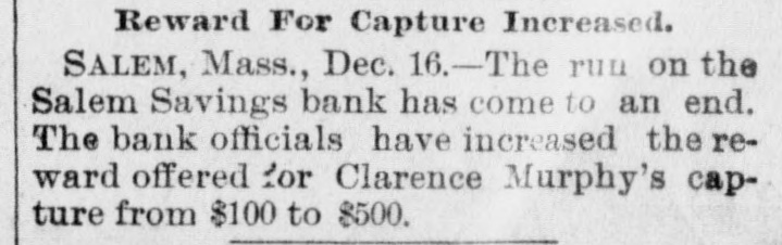 The amount embezzled by Clarence Murphy, the missing bank teller of Salem, Mass., may reach $60,000