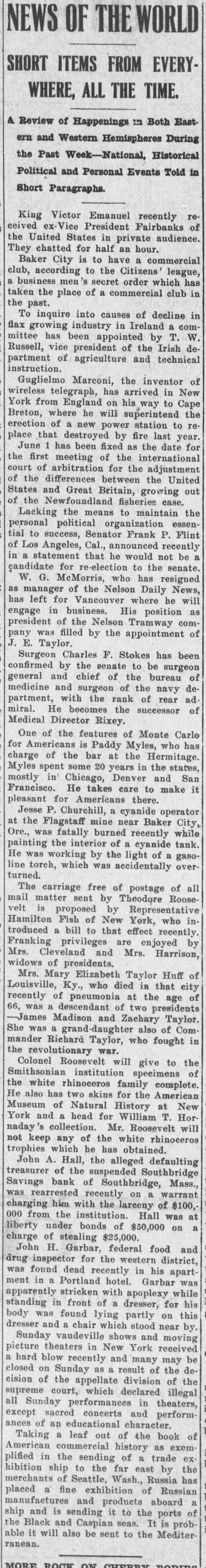 A Review of Happenings in Both Eastern and Western Hemispheres During the Past Week-National, Historical Political and Personal Events Told in Short Paragraphs.