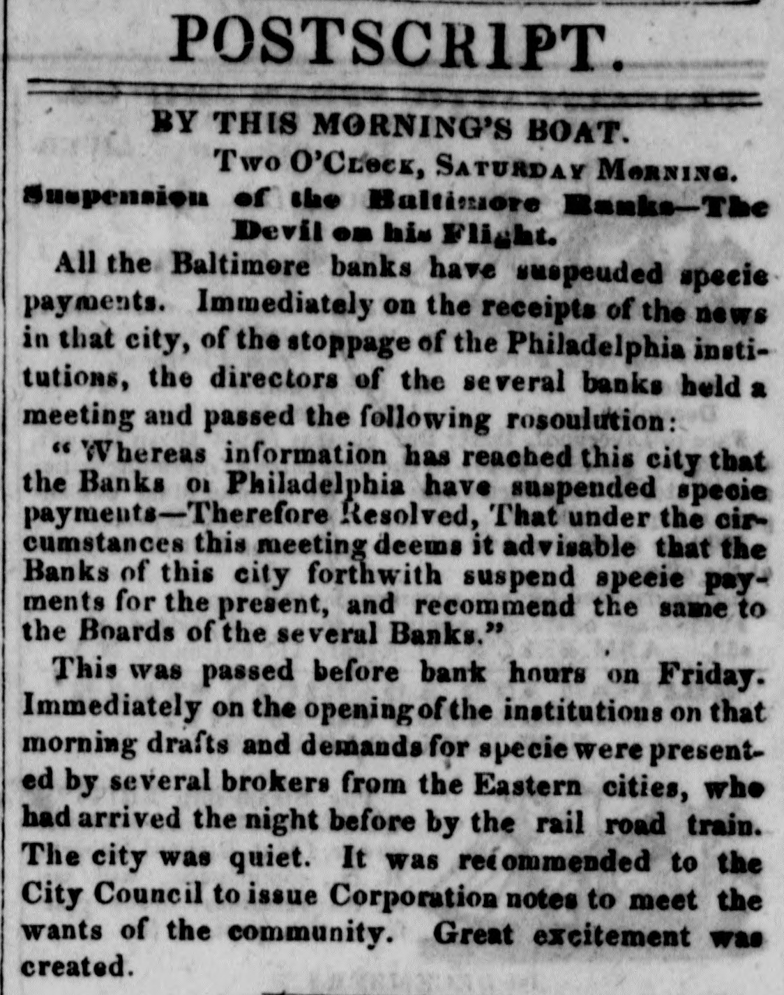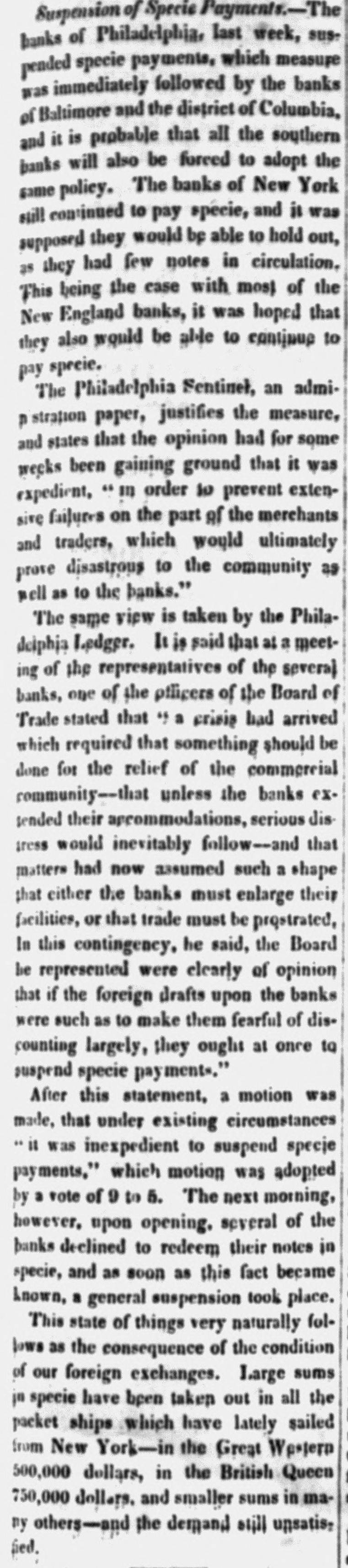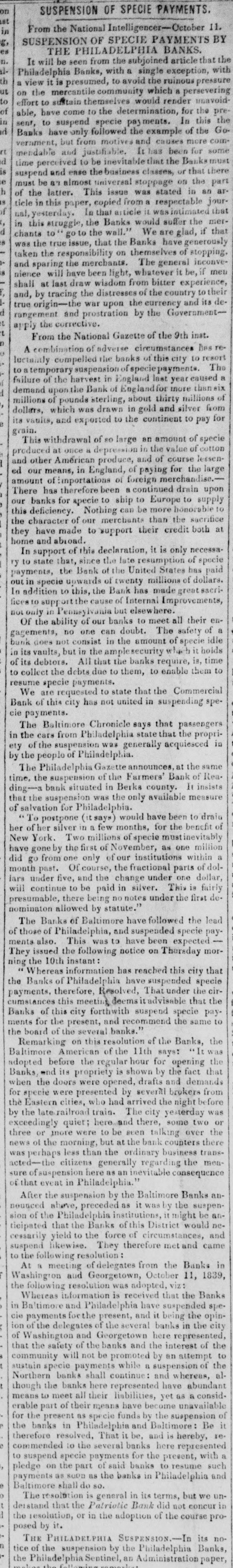 Ise pusa and Baltimore Banks and suspend specie pay-