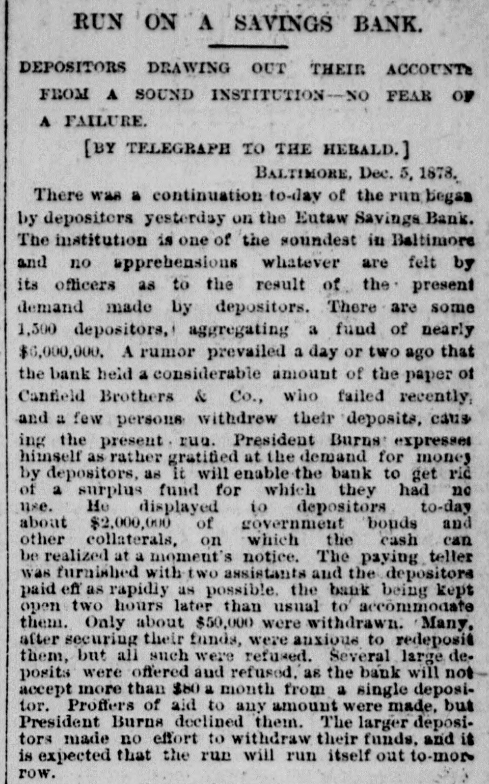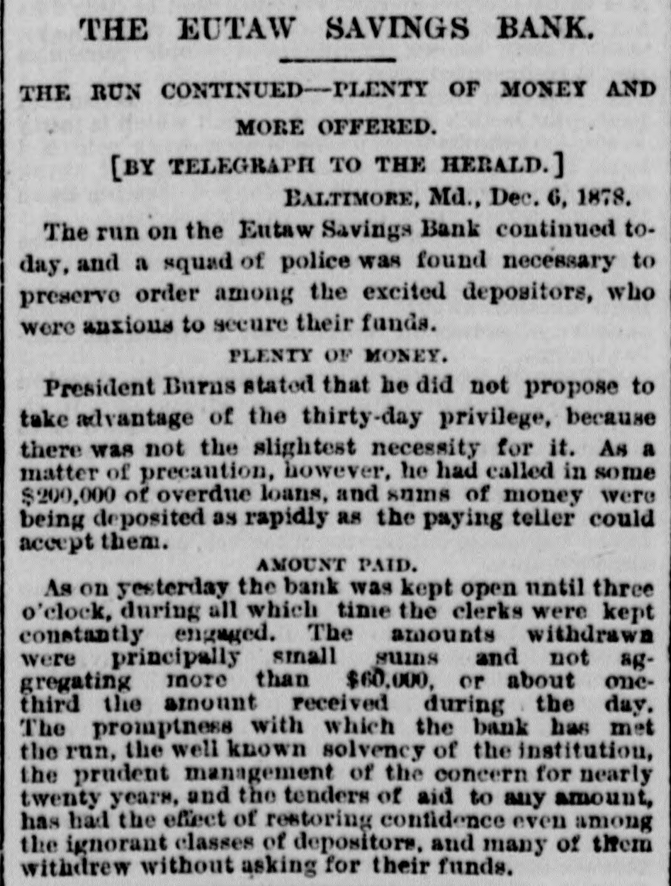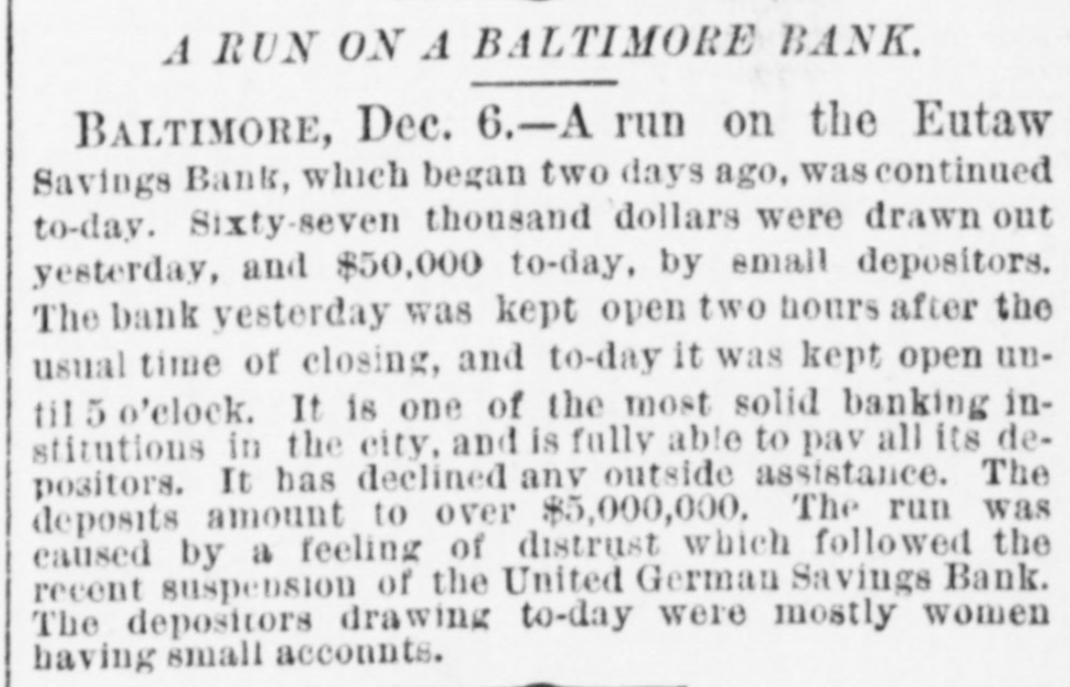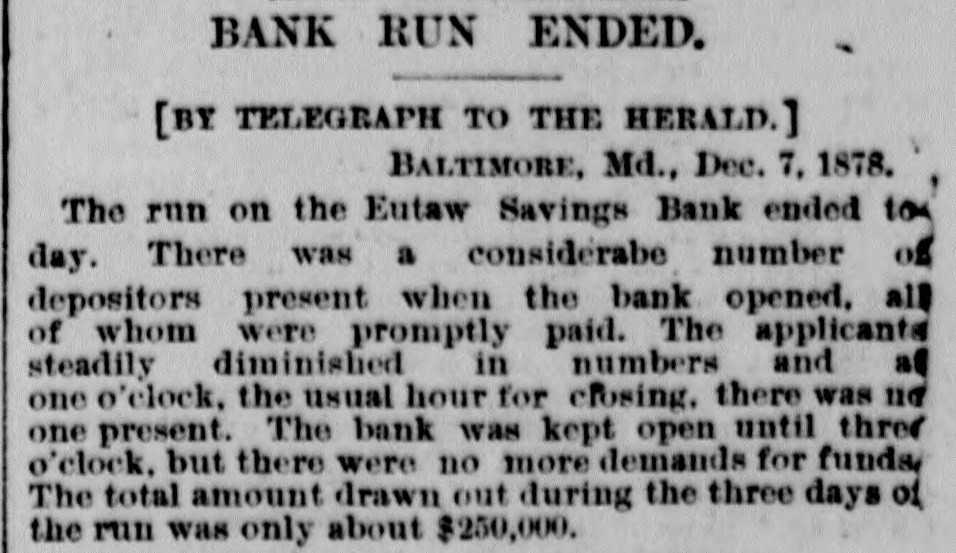 OUR CORRESPONDENCE. Baltimore Letter. Run on a Bank-Street Music and Beggars-Fashions. [Special correspondence to the JOURNAL.] BALTIMORE, Dec. 11, 1878. One of the most unaccountable and unreasonable things that ever occurred here was the run on the Eutaw Savings Bank last week. The officers were at extra of work surprised the payingteller the had to amount perform and the on a receiver; the unemployed and inquiry condition found that of rumor had gotten abroad that the bank was unsound. The books of the bank showing its good condition were open for the inspection of all interested, but even this and the frankness of the officers failed to restore the lost confidence until two or three days of constant draining were over. The bank stood the ordeal bravely but could not have existed through many more such days. The rumor was entirely unfounded and it is as yet unknown with whom and how it originated. Street-musicians are in Baltimore things of the past. Three or four was a common OC+ currence to ears years ago it have your very saluted ten or twelve times per day with the most distracting music from wornout weresome hand-organs, few beautiful harps organs and and music violins. harps which and There these really gave were known, waited for and welcomed all over the city, while those who were not so fortunate as to possess good instruments were driven from street to street by the distracted citizens. Now, however, it is different; they are all gone, the good bad and indifferent"The harp that once thro' Baltimore; The soul of music shed, Now keeps as mute in Baltimore As if that soul were don'd." This scarcity of musicians is perhaps due to the fact that as most of them were Italian children the law is now 80 very strict in regard to this class that are peron forming they the prohibited street in any from way. is direction it not respect But if the certainly law is strict in in this be to beggars. It is known to the law, that is, people remember when it was made (they never remember of it no was to on of being be enforced) indulged in that penalty begging imprisonment or fine, and yet there are hundreds and hundreds of people who are out every day and all day going from door to door begging money, food and clothing. It is right to overlook this law in such times and weather as we are having now, for although there are many unworthy ones who receive succor in this way yet it also needy reaches poor people many who deserving would other- and wise starve. There are thousands of men out of employment and many of them this winter miss their kind was some continually employer, Thomas making Winans, who improve= ments, or contriving machines and work simply, it is said, for the purpose of giving work to the poor men. The fashions for ladies seem to have now become stationary and will remain SO for some weeks. The hats worn are particularly becoming to most ladies and are exactly like the gentleman's stiff felts and are even trimmed in the same plain style; some, however, have a bright colored scarf twisted around the crown. Among the soft felts for ladies the Davenport is by far the prettiest shape. It has a tolerably high crown, a rolling rim on one with a a fastened gay up plaid scarf side and and trimmed wing. Both hats and bonnets this season are remarkable for their plain trimmings and quiet shapes. The skirts of street dresses are still short while trains are worn in the house. The popular way of making dresses is with a trimmed skirt and a basque. An entire cambric skirt is first made and a deep pleating or two or three ruffles put on the bottom then the overskirt is made and sewed down to the on one at was binding cambric the skirt waist. and all This put formerly confined to silk, velvet or other
