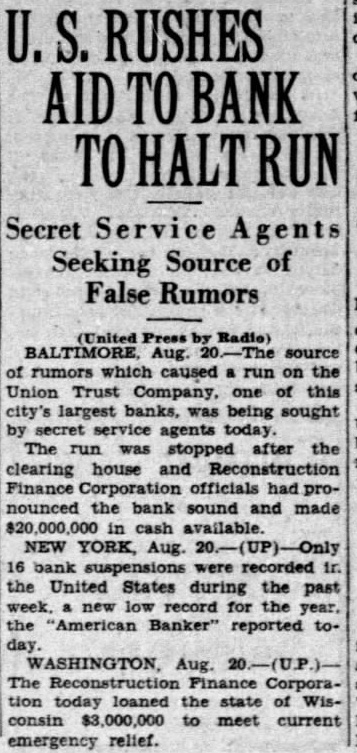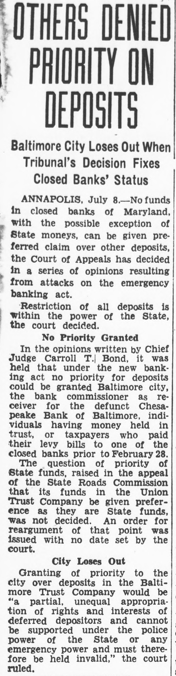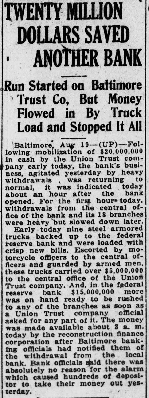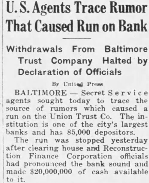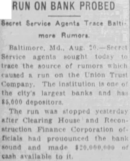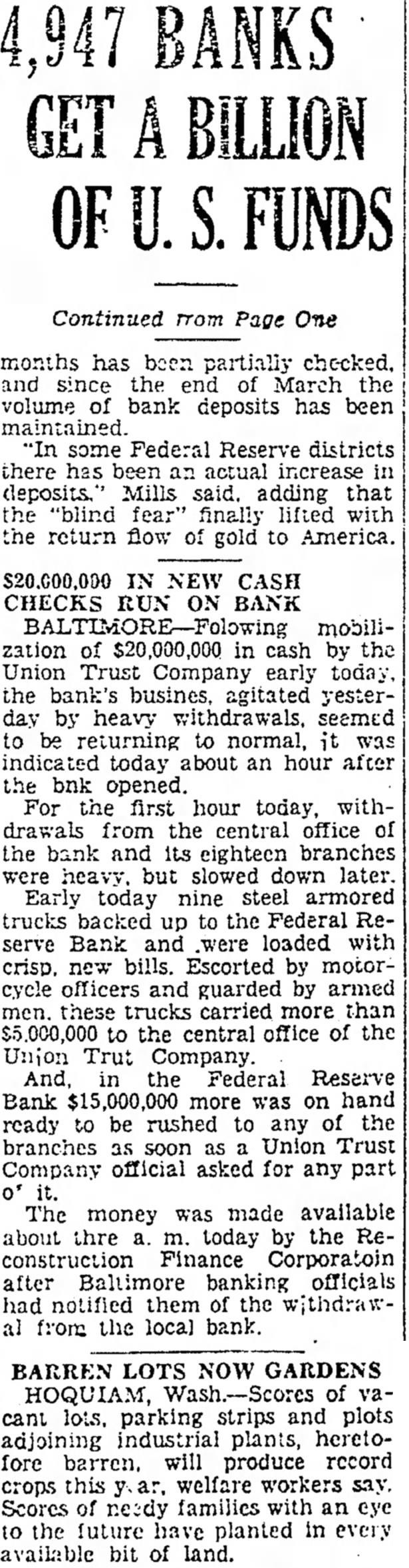 $6,000,000 Available Approximately $6,000,000 of deposits will be made available without restriction for the use of depositors on the day of reopening, according to estimates which previously have been nounced by Benjamin H. Brewster, president of the trust company. Mr. Brewster absent from the day and could not be reached for Notices were mailed last night the subscribers the $500,000 tal notes asking for by Friday. This will enable the trust to give notice to the Federal pany Reserve Bank at Richmond this week that the additional capital has actually The capital was specified by the Federal Reserve Board Washington, following several hearings on the application, condition membership.