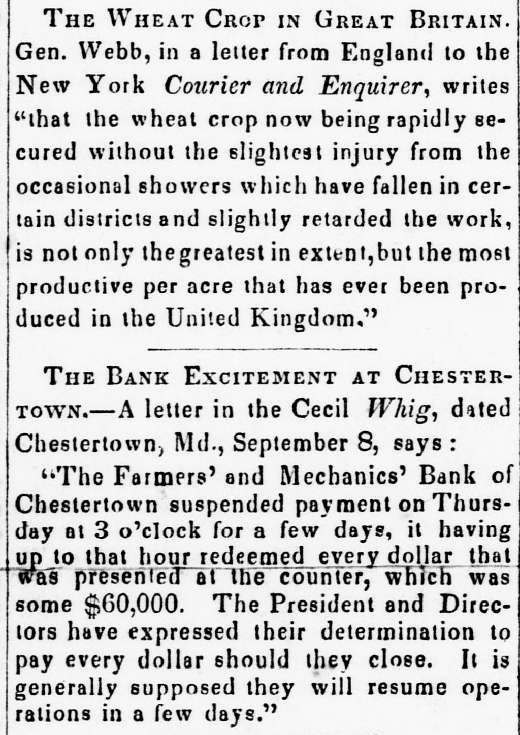 navy, who was cently tried by a naval general court-martial, at Philadelphia, was found guilty of all the charges preferred against him, with the exception of the charge of " disobedience of orders," and sentenced to be cashiered. The finding and sentence of the court has been approved by the President dent of the United States. SLAVE RIOT AT CHICAGO.-A telegraphic dispatch of the 12th announces an attempted arrest of a fugitive slave by three citizens of St. Louis, in the street, without the assistance of officers. An immense crowd soon assembled, and rescued the fugitive from their possession. The captors instantly attacked the crowd and re-took the fugitive, firing pistols and wounding one of the mob. The three were then arrested, and are now being examined before Justice Pearce. An excited crowd is gathered around the office. THE BANK SUSPENSION AT CHESTERTOWN.-The Centreville Times states that the Farmers' and Mechanics' Bank at Chestertown, Maryland, on Friday last received a remittance of twenty thousand dollars from the Springfield Bank of Illinois, which bank is indebted to her largely, the indebtedness being firmly secured, and that she will resume payment on the 21st instant. The Times, however, doubts whether the bank will ever regain public confidence. YELLOW FEVER AT Savannah.-Although Savannah was visited by a violent gale on Thursday and Friday the yellow fever shows no abatement. There were 20 fever deaths on Thursday, and 13 on Friday. Among the victims are S. T. Chapman, esq., editor of the Journal and Courier, and Captain Trefethen, of Portsmouth, N. H. Mayor Ward, and R. B. Hilton, esq., editor of the Georgian, are down with the disease. At Augusta they are taking subscriptions in aid of the sufferers at Savannah. THE PARKER VEIN STEAMSHIP COMPANY.-It is stated that this company has made an assignment of its property to Charles S. Darrow, esq., for the benefit of the creditors and bond-holders. Mr. Darrow will continue to run the line, without interruption, until an advantageous sale of the ships can be had. He is a gentleman of large experience in shipping, having been engaged in that business in Boston for twenty years. AGRICULTURAL DELEGATES.-At a meeting of the New Castle Co., Del., Agricultural Society, held on Saturday last, Messrs C. P. Holcomb, John A. Griffin, Bryan Jackson, John C. Clark and Wm. Reybold were appointed delegates to attend the xhibition of the Agricultural State Fair at Baltimore. Mr. J. B. MOSELEY, formerly of Richmond, Va., has purchased the entire interest of J. G. Finnie in the Memphis Eagle and Enquirer, and is now sole publisher of the paper. Mr. Moseley is a man of energy, and is, we have reason to believe, reaping the reward of his well-directed industry. TREMENDOUS DEATH ENGINE.-Shells weighing one hundred pounds were fired from Lancaster's long range gun the other day, on board a vessel near the Isle of Wight, with a surpassing result. One was sent 4,000 yards distance, and reached the top of a cliff 500 feet high. It was calculated that in a tranguil sea, so that good aim could be taken, a mark 7,000 yards distant might be hit by this gun. MR. T. STANFORD, for more than twenty-five years editor of the Mobile Register, has resigned his editorial chair to Mr. John Forsyth, and has taken leave of his readers in a long address, in which he reviews his whole course from the moment that he assumed the editorship of the Register. THREE BRIGS and eleven schooners were driven ashore at Holmes' Hole during the northwest gale on Saturday night It is thought that most of them will be got off after discharging. No lives were lost. UNITED STATES BRANCH MINT-The coinage of the mint at San Francisco on Wednesday, says the Sun, exceeded that of any other day since the establishment went into operation. It amounted to $60,000. Total amount for July $528,000. No DEARTH OF NEWSPAPERS.-Of newspapers in San Francisco 'the cry is still they come. , There are now nine daily papers, two tri-weekly and seven weeklies. The Alta says that two more daily papers are shortly to be issued. RAILROAD BRIDGE HAVRE-DE-GRACE.-Piles are now being driven in the Susquehanna river where the railroad company have determined to bridge it. The location fixed on is from near the present reileced the Cecil side, to near