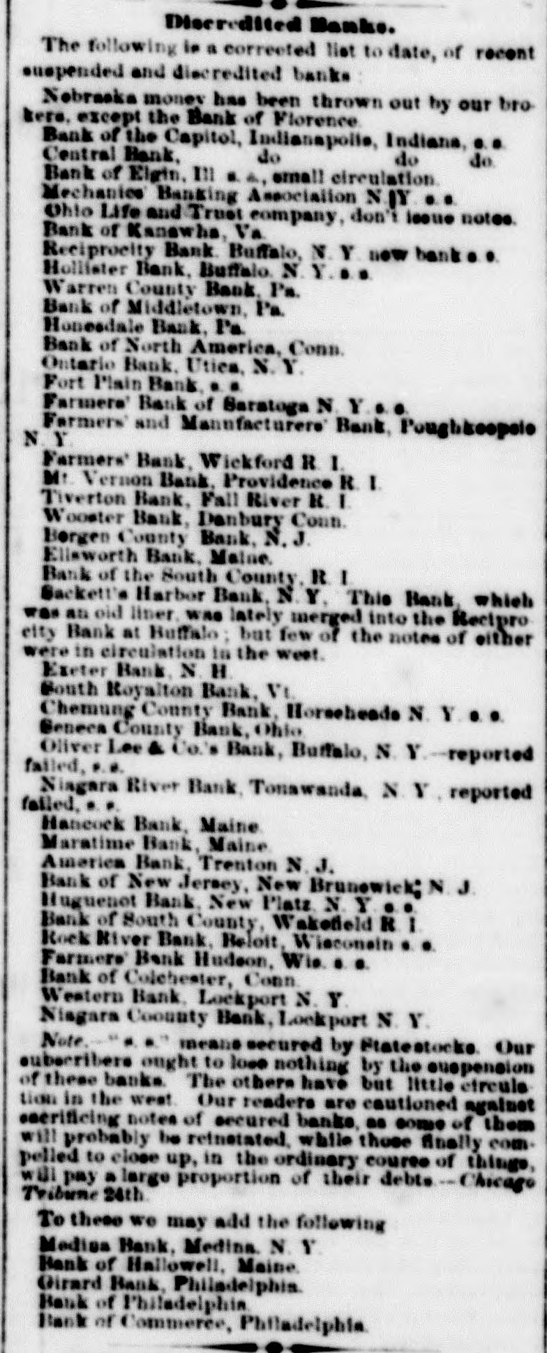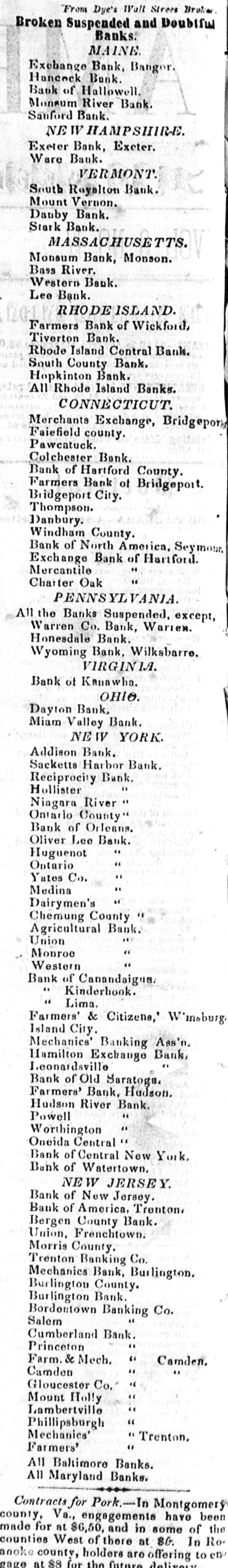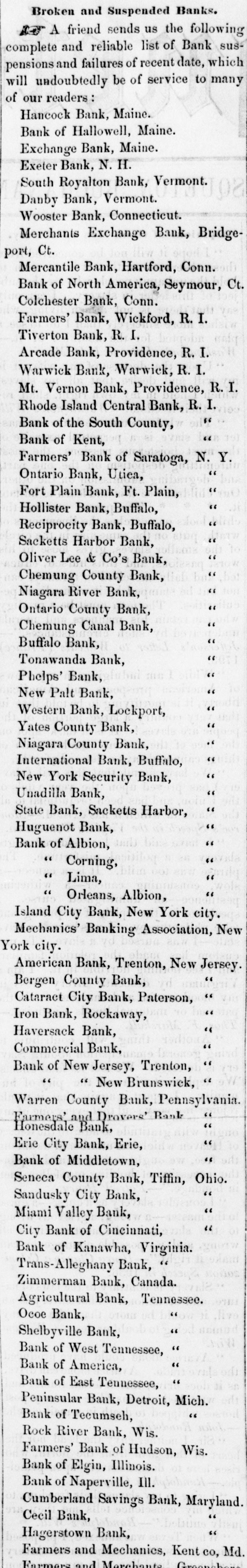 SECOND BOARD 61 Erie Railroad ... Harlem RR 2d Mtge. 75 61 btwk $600 18. Cen. RR. Bonds. 94 100 100 Mich. So. Is. RR 871 Del. & Hud. Canal Co. 117 74) 120 N. Central RR 91, La Crosse Mil. RR b20 Illinois Central RR Erie Railroad. 601 40 Chic. Rock Isl. RR 1042 100 snw 601 104; 615 100 300 69, TUESDAY, Dec. 23-P. M. The transactions of the Stock Board to-day were extremely limited and the market was without any feature of interest. There was no second call, and the Board adjourned at an early hour. Prices show no very important changes, but, under the circumstances of the market, are very well sustained. Among the stocks that improved was Rock Island, which sold at 1042, closing at 104} bid. Illinois Central Bonds were also buoyant, and advanced to 941. h State Stocks the market is heavy. Virginias fell off to 94, Missouri 6g are lower. Some of the Western free banks are contracting their circulation, and sendbg their stocks here for sale, having improved to 79. Californias are better. The business in Exchange has been to fair extent for the steamer, and the bankers have been free draw. ere at 81@9 P cent for sterling. Outside bills were net over abundant. Francs were also heavy and dull. To Liverpool the engagements are 1,000 bble. of Floura 1s. 9d. 104d.;{20,000 bush. Grain at 61d.; 120 tune Logwood at 22s. 6d.; 50 tcs. Rice at 20s.; 500 Mandspikes at 21d. each; 400 Oars at 1d. each. To London: 500 bbls. Flour at 2e. 9d. @3s 200 boxes Bacon at 30s., 125 tes. at 3s.; 96 bales at 30s.; 50 tce. Lard at 30s.; 200 bbls. Pork at 4s. The business of the Sub-Treasury was: Receipts, $268,118 20; payments, $229,286 40. Balance, $11,988,104 43. The Seventh Ward Bank has declared a semi-annual dividend of 5 # cent, payable on the 2d of January. The Bank of America a semi-annual dividend of 4 * cent, payable Jan. 5. The Bank of the Commonweakh a semi annual div. idend of 5 * cent, payable Jan. 2. The Tradesmen's Bank a dividend of 5 & cent, payable Jan. 2. The Emigrant Industrial Savings Bank & dividend at the rate of 6 P cent * [annum on sums of $500 and under, and at the rate of 5 P cent * annum on larger sums. The business of the Clearing House to-day was $22,917,000. The Micbigan Central Railroad Company, by their aireular just issued, show a balance of $615,322 55 to the credit of income account, after deducting the recent dividend of 5 P cent, amounting to $302,855. The earnings for six months, ending Nov. 30, were $1,928,347 71; operating expenses, $914,170 03-net earnings, $1,014,177 68, from which was paid for inBereet $261,166 41, leaving $753,011 27, or about 12 P Cent on the capital stock. A remonstrance was in circulation at the Merchants' Exchange to-day against the passage of & bill by Con green requiring American merchantmen to use, under penalty, Regers's Marine Signals. The street was very quiet to-day. The storm shecked business. There was the usual amount of loans called in and replaced, but we think money was a trifle less difficult to find on good securities. Paper is not very plenty of strictly first-class signatures, and goes at 81@91 per cent. We hear of no further enpagements of gold for the steamer. The foreign advices by the Canada were not considered important. Considerable discussion occurred at the Second Board whether the quotation of Consuls, 94 for account, was dividend off or on. The quotation by the the City of Baltimere at Philadelphia to 3d Dr was 941 @941, both for money. If Consuls are Adend off, the the advance has been about 11 per cent. 1 year books of transfer were closed on the 6th Dec., and the Steck sold, dividend off, on the 10th or 12th. There are various rumors afloat oregard to the stability of some of the interior banks, and we shall not be surprised if some further suspensions take place. Two are named to-day as being under protest, but will possibly be financiered out of their difficulties. The Bank of Hallowell is stated to be under injunction, but we understand that the affairs of the institution are in & safe condition, and that the injuction upon hearing will be discharged. There is some difficulty among the Illinois Free Banks, growing out of a movement which the Chicago, Cincinnati and Louisville Bankers, have made to throw out most of the notes of these Banks. The law of Illinois, it appears, allows the Banks to redeem their small notes up to 5, in silver soin. This has been taken advantage of by the Banks to embarrass the exchange (forward) houses which have sent notes home for redemption. These houses have frequently been delayed several days reociving dimes and quartersi in redemption of their notes. The result has been that the brokers in Chicago and alsewhere have thrown out many banks and forced the currency home. If this is continued it will probably wind up several of these institutions. Some of them have already commenced withdrawing their securities from the Bank Department and have sent them here for sale. The annexed, in relation to suspended Banks, in from Thompson's Reporter The accounts from Lancaster all concur in saying vigorous exertions are being made to resuscitate the Lancaster Bank, with a fair prospect of success. We cannot learn of any movement on the part of the *wners of the Canton Bank, South China, Me., toward redeeming the outstanding circulation. The capital was small, and the paper mostly used in the vicinity the Bank. The Bank of the Republic, R. I., is & hopeless cassthe securities are even worse than represented at first, and we fear the holders of the circulation will realize but & small per centage of the amount. The reported suspension of the Bank of East Teanessee is contradicted by the papers of that place-by authority lay the blameto certain Banke at Lonisville, Ky. We have had confidence in the officers, and believe all will be right. The recent rumors to the discredi of the Mount Ver men Bank, R. I., were unfounded. The Bank has uniformly met all demands upon it with considerable promptness. From p