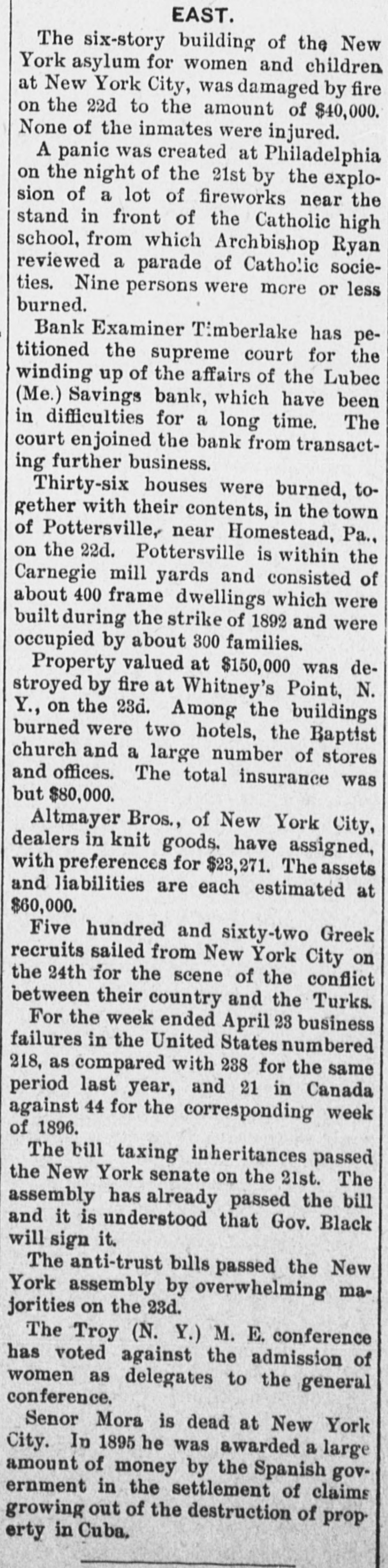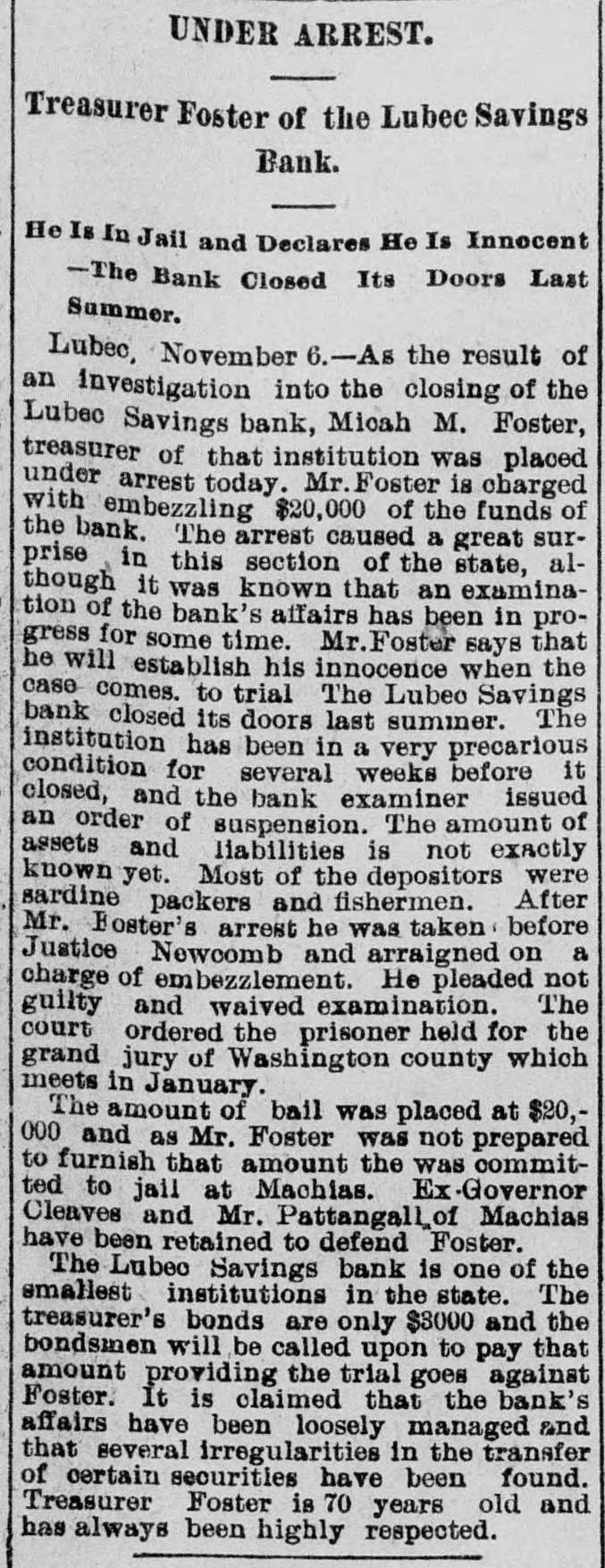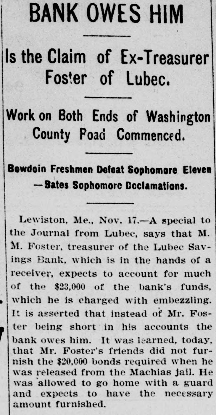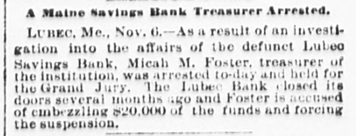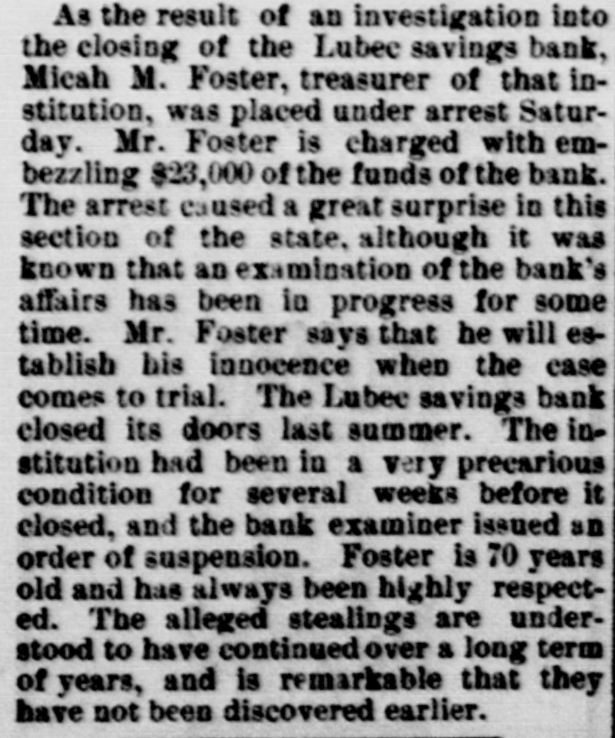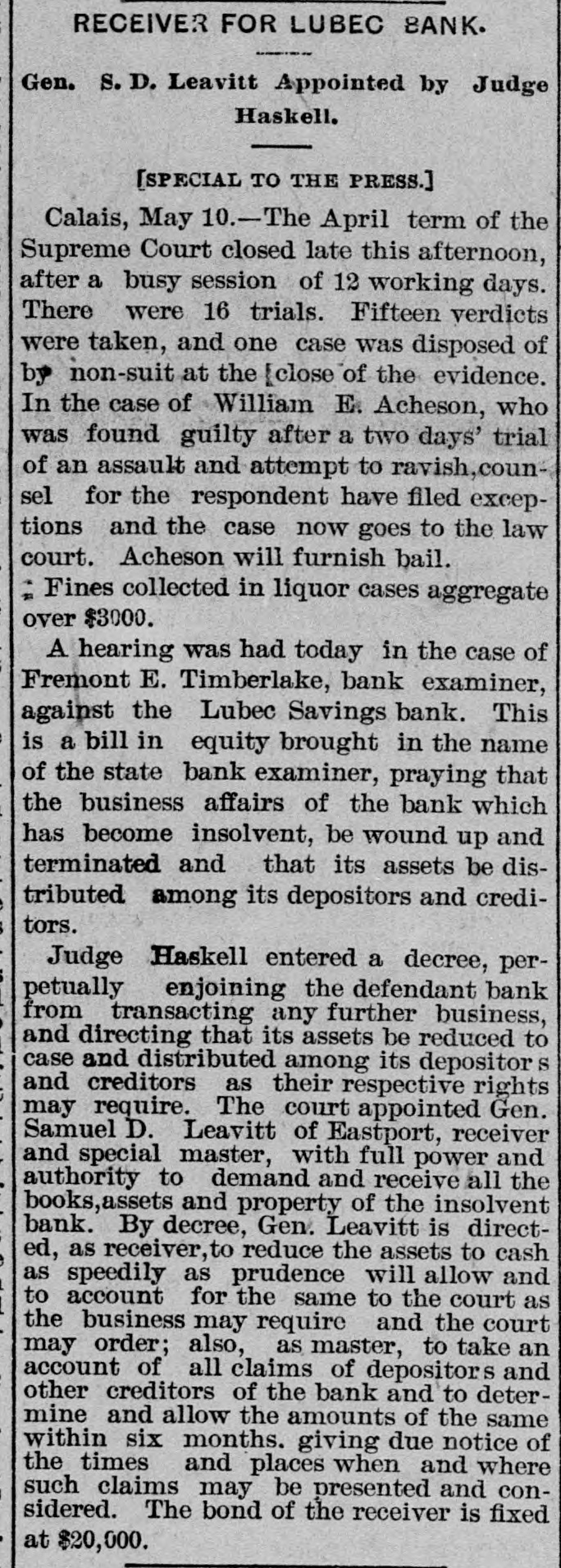 Annual Report of Bank Examiner Timberlake. STORY OF THE LUBEC DEFALCA TION TOLD IN DETAIL. Suggestions for More gafely Protecting Depositors Augusta, January 25 State Bank Ex aminer Timberlake has just submitted his.annual report to the Governor assets and Council. The number, classes and of the institutions under his supervision bank as follows: Fifty-one savings trust are with assets, $62, 826,303.83; sixteen and banking companies with assets $7,5 building 13,403.15; thirty -three loan and $2,912,963.63 associations with assets $73,252, Total number 100; total assets, 670.61. This is a decrease of four in the "notwith- total number of institutions, and, $2,793,084.35 standing this, an increase of during the aggregate amount of assets the in period covered by this report. equal distribution of these assets state would An give to each person in the $110.81. They have paid depositors and stock divi holders $2,540,767.21 in interest and during the year. This showing is dends highly satisfactory. when we take been into consideration the fact that there has un increase in the amount of their divided an profits and reserve accumulations, in and general charging off of poor vestments. report shows an increase of 4,764 in $2,121, The banks deposito and during the savings the amount of deposits that year. 452.80 in This gain is nearly twice for the preceding total of year. 167,879 depositors, 129, 865 Out have of $500 or less standing to the credit of each. amount now standing an in- to the The average credit of depositors is 1896 $355.01, of $2.64 over that of crease amount of withdrawals during amount the The 425, 527.37, and the $1,454,858.82 deposited year was $10 including dividends credited, Owing to the general the appreciation larger amount in the of value investments of securities,and within the has state been and but in & government bonds in there the amount of taxes slight increase state over that of 1896. is paid The to reduction in the highly premium satisfactory, account considering although small, the fact that the portion banks have of the premium on a large the year. paid purchased during depositors securities present number of is 13,005 in trust The and banking companie $5. 1,024,120.78 This is an increase and the amount of deposits of $672,394.65 in deposits time during deposits the year and certificates the of same de as source in positors posit The are derived the deposits from in much savings banks. this The present number and the of total deposits of $459, $3, class is 8,817 This is an increase of the 830.19 166,728 in 76. this kind of balance deposits standing during to year. The average depositor in t is departthe credit of each while that in the savings is banks, ment is as $359. has 16, already been stated $355.01 The amount of interest is $109,249.18 paid during and the year that on in the all savings deposits department alone, $95,264.65. of interest on time deposits The rate from two to four per cent The per an- average varies in the different banks. the rate of num is substantially the savings same as banks The amount be This would dividends paid of by dividends paid to AD stock avera of age of these holders is little $85, 752 over six per cent institutions, on the en tire capital stock rate paid last year was while the average This gain in average but five per cent. the capital stock 000 is due of non in earnings elimination of $125, dividend part to the paying stock from the statement as given in 1896 and building associations in the In the loan an increase of only 1.031 1-2 four in the there is of shareholders $199,911.49 number number of shares outstanding accumulated capital; in the amount of in the total assets of these and $221,517.10 institutions during the the year. number of their loans 157, They have and increase the amount of the same laws $143,583.57 amendments to the The recent these institution The are provision already governing good results. producing requiring each association has much to facilitated keep a monthly trial this balance department, and has system also the work means of of improving lations the All been bookkeepi the in many bonds asso as 'now relaw. of the officers are under In many instances be- the reduced quired premium by charges law, have and been the cost of money at cause of the thereby lessened. accumulation More to borrowe given to the associations tention guaranty is now fund, and the thereby of will be gradually strengthened tone and indition re- of the In fact associations the general are improved in many associaan is found item spects. Among the resources account of called many Perma- emThis usually tions nent Expense. books, furniture and other Though ex braces the organization. penses at time of Current declaring Expense each ac. count - it should count-chargeround distinction from off before be gradually charged off reduced out of mature. the earnings, dividend- in amount and at finally least before the first series LUBEC SAVINGS BANK. closing of Lubec Savings was Bank some The 1897, followed as it shortage months accounts, April 17th, later by the report of has a led to a in the treasurer's discussion of the laws under are general savings banks in this State present which especially of the examination conducted of supervision and the propmethods that directly than affects 25 per cent people. understand erty -& question interests of In more considering the this present matthe of ter our one should of making examiner. examinations, and the the general authority methods placed given by statute upon mode of the proce- trusduties tees. The adopted same in making affairs examinations of all the dure is supervising the throughout the and in institutions therefore outline the course at different State. will, by this depar the ment same with time regard state pursued to this bank way and in which its affairs trustees. were briefly the its treasurer and the conducted by dings are pending for against the emof the bank former As