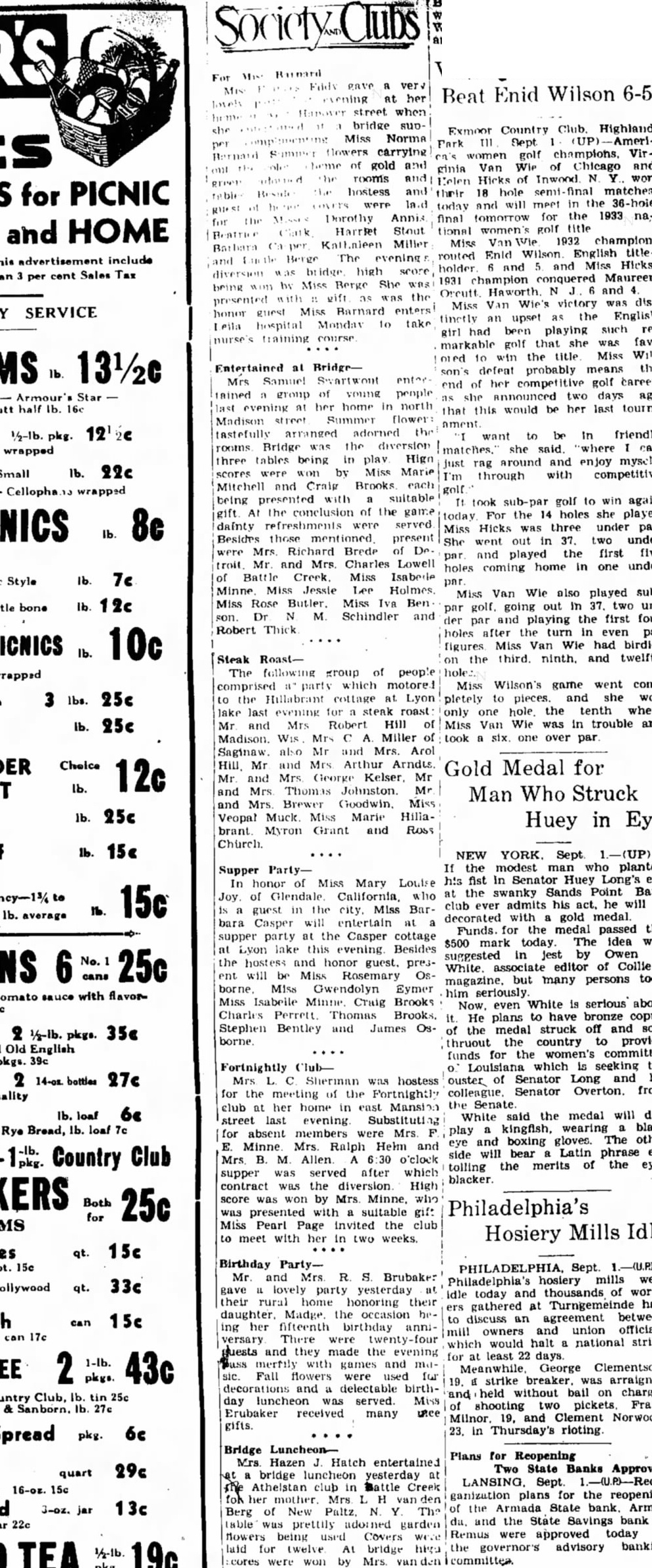 Article from The Grand Rapids Press, September 1, 1933
