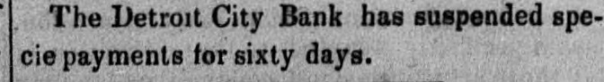 The Detroit City Bank has suspended specie payments for sixty days.