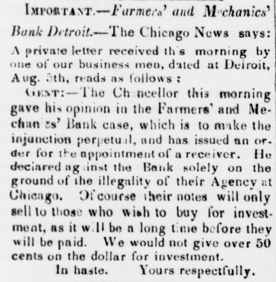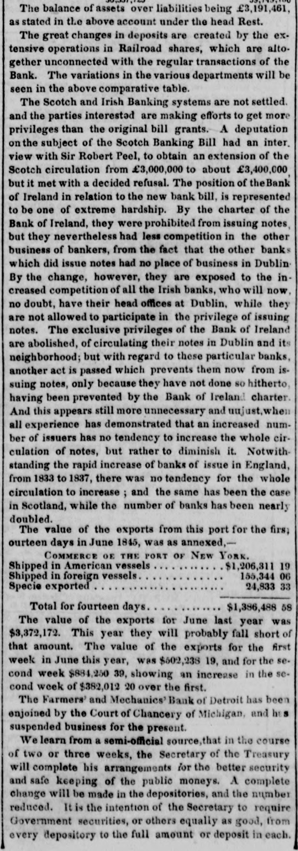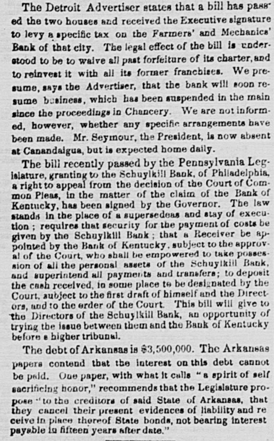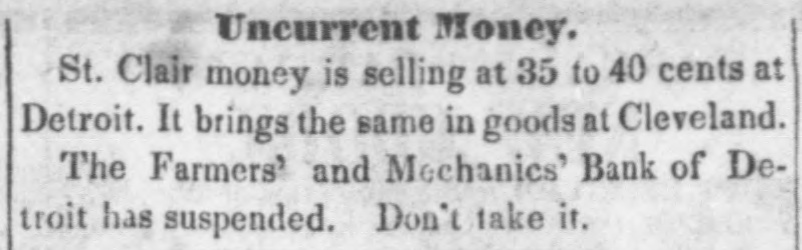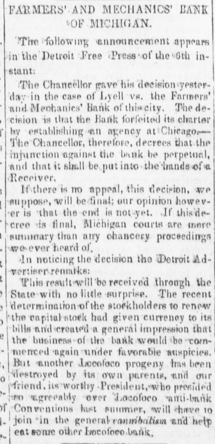 Tne WEATHER YESTERDAY was cloudy and cool. THERMOMETER YESTERDAY 6 A. M., 66 9 A. M., 73: noon, 81; 3P. M., 81; M., 78; midnight, 67 Mean temperature. 74. Old-Time Banking. A GOOD STORY OF THE GOOD OLD DAYS OF STATE BANKS. [From the Detroit News.] Some funny stories are told of business methods in the olden time, one of which will bear repeating as an illustration of the advantages silver dollars possess as a bank reserve, and which, by the way, we especially commend to Secretary Sherman. The old Farmers' and Mechanics' Bank was established in Detroit in 1839. In 1845, owing to some disastrous operations in Ohio. it was temporarily badly crippled, and to tide over the erisis the directors lent their best energies. The bank had a large volume of notes outstanding, all redeemable in coin on presentation, and it was apprebended that the moment the condition of the institution became known a run would ensue, compelling the closing of their doors. Nowadays a bank officer would throw up the sponge under such circumstances, and suspend payment like a little man, but then bankers were both bold and fertile of expedient. The coin had run down very low, and there was no time to be lost. The services of a friend of the institution were secured, and he was privately sent to a large creditor (Lyell, the subscquently defaulting banker, by the way). to whom the critical state of the bank was whispered, and the wisdom of some measures for self-protection suggested. Lyell snapped at the bait, and, upon a hint from the officious visitor, rushed around to the nearest court and got out an injunction forbidding the bank to pay out any more coin pending the order of the court. This effectually saved the concern, for when note-holders subsequently presented the bank's papers for redemption they were politely met with the reply, " We should be very happy to oblige you, sir, but unfortunately we are for few daystied up by a process of the Wayne Circuit Court. We hope the injunction will soon be dissolved, when," &c. It was late in the afternoon when the injunction was served, and the stock of coin had some hours previously dwindled to 853. The cashier mean time was on nettles. the injunction did not come quickly the concern was ruined. At every opening of the door the poor man trembled in his shoes lest the new-comer should be a noteholder in quest of coin. One more demand would close the concern forever. Slowly the clock ticked off the minutes, full thirty of which must yet elapse before the hour of closing. Would that injunction never come At last the door opened, and nervous. bustling man burried to the counter. The cashier saw at a glance that it was all up with him, but while there was hope, be thought. Here, Mr. Cashier, I've got 8500 of your notes I want coin for." The cashier endeavored to preserve a placid exterior while he deliberately bethought bimself how he might delay a refusal of payment for a little while, until, perchance, an officer would come in with the boped-for injunction. So you want coin for your bills, do vou? suavely remarked the cashier, glancing with the corner of his eyes through the open window into the all too quiet street. Why, yes! I live in Dexter, and want to catch the 4 o'clock train; so please hurry up the specie." All right What's the news in Dexter How do the crops look? How's my old friend -? Is he living there still And, by the way, what in the world can you do with specie in that little country town that Farmers' and Mechanics' bills won't accomplish?" Oh, never mind. Give me my money, so that I can catch the train. The fact is. there is a little flurry out there about the safety of your bank, and I want to make sure of my money.' Ha! ha! ha laughed the cashier: afraid of our bank, are they ? Well, they must be getting pretty fastidious when the conservative old Farmers and Mechanics won'tsuit them. Why, my dear sir-' Never mind the pedigree of your bank, but give me my money, or I shall miss my train." Certainly, mv dear sir." (Another glance through the window, but still no sheriff in sight.) Aside: What shall I do?" There, I've got only ten minutes to catch my train. If you will assure me upon honor that it is all right, and that the bank is not going to bust, I won't wait now. but if you are going to shut up want my money. Come, how is it, old fellow Really, sir,' replied the polite cashier, " you place me in very delicate position. If I tell you the bank is safe, and anything happens hereafter, you will blame me; on the other hand, if I tell you it is shaky shall be unfaithful to my employers, and shall very justly be discharged. I prefer not to make any statement, but simply count out your thousand half-dollars. (Half-dollars were the principal coinage in circulation at that time.) Turning, screw-driver in hand. to strong :wooden box, apparently tightly screwed together, such as silver coin was usually packed in in those days, but which the eashier knew very well to be absolutely empty, be wiped off his brow and set himscif to work as if to an hereulean task. The man glaneed at the clock. then at the iron-bound coin box, then mentally ealeulated the weight of a thousand half-dollars, then burst out with: Never mind: see you have got the coin, and I'll d-d I'm going to pack a thousand half-dollars all the way to Dexter to-night. Never mind, Mr. Cashier, I won't trouble you,' and out of the bank he darted. The injunction was served soon after and the danger passed. But the old Farmers and Mechanics still kept up the habit of being short of coin, and did so till the last, when nearly twenty years later what was left of It was consolidated with a private bank, and became the now prosperous American National Bank, of Detroit. The worthy cashier still lives in Detroit, and finds a bonanza of enjoyment in recounting the amusing incidents of old-time tinanefering. The Comte de C. at the Cusino of Trouville beholds a gambler of the Greek order of architecture playing écari