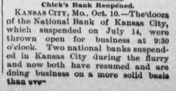 Telegrams Made Terse. Vice-President Stevenson and party are rived at Los Angeles, Cal., yesterday. Advices from Warsaw, Poland. state that the expulsion of the Jews is continued see cretly. The National Bank, of Kaneas City. Mo. has closed its doors. Liabilities estimated at $1,000,000. The Comptroller of the currency has appointed J. B. Anderson receiver of the Gulf National Bank of Tampa, Fls. The Mercantile Bank. of Memphia, Teun., yesterday withdrew from the Memphis Clearing-House Association. Jules Aldige, one of the wealthiest eith zens of New Orleans and largely identified with cotton-seed oil mills, died in Paris yesterday. The British House of Commons has agreed to an address of congratulation to be presented to the Queen upon the recent marriage of the Duke of York and Princess May. The new United States cruiser Detroit, in tow, left the Columbian Iron-Works Baltimore, yesterday for the Norfoiknavi. yard, where she will receive her arma. ment. It is announced that as a result of the failure yesterday of the National Bank of Kansas City, Mo., the Frankifh Savings Bank of the same town will to-day make an assignment. The assets areabout $15,000. The reports from the Bavarian parlia. mentary elections show that seventy-three Clericals, sixty-eight Liberals, three Con. servatives, seven members of the Peasants' League, five Social Democrats, and one Democrat have been returned. The Grand Duke Michael, uncle of the Czar. has persuaded the Czar to postpone indefinitely the expulsion of Jews from the Caucasus. The Grand Duke is under stood to be strongly opposed to the whole anti-Semitic policy of the Russian government. Two of those wounded in the West. Shore wreck at Newburg, N. Y., died Thursday night-Julia Michel, of Brook. lyn, whose skull and thigh were fractured, and Charles E. Sistare, of New London, Conn., who suffered from fractured ribs and internal injuries. The Interstate Commerce Commission yesterday confirmed the report from Tacoma, Wash., that President Van, horn. of the Canadian Pacific Hailread Company, and several local agents of the road bad been indicted by the grand jury for violations of the interstate commerce act in making secret cut-rates for passongers.