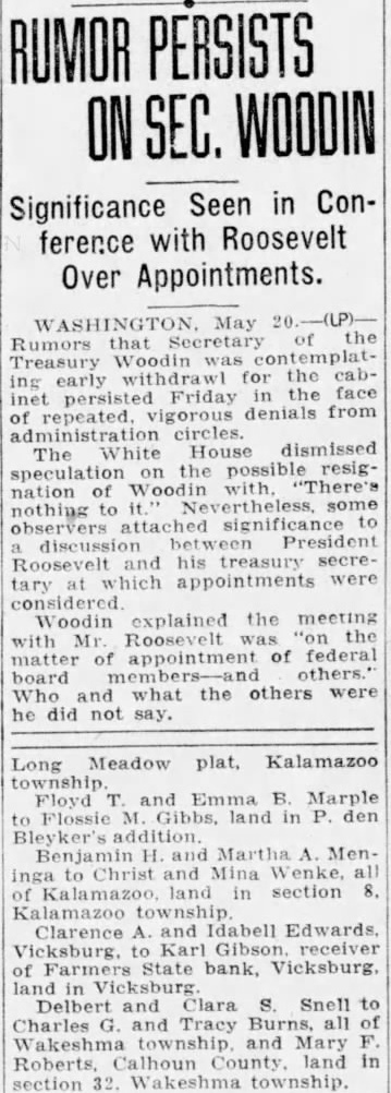 Two Get Patents-Patents granted this week by the United States patent office two to the following: Harold K. Wilder. Battle Creek, storage carton: Charles H. Jarvis, Battle Creek. atomizer or sprayer. Gets Finger Crushed-Francis No bles, son of Charles Nobles of 395 North Kendall. had the middle finger of his left hand crushed when a cement block fell on it about 7 p. m. Thursday He was brought to Nichols hospital for treatment. Attend Homer Funeral-Mrs. T.J. Lyon. by Miss Elizabeth Logan and Mrs. B. N. Beedon, motored to Homer Thursday where they attended the funeral of Mrs. Priscilla Beedon. an aunt by marriage of Mrs. B. N. Beedon. Dr. Maveety to Speak-Dr. P. J. Maveety will speak on "Foundations" at the religious service to be held in the North Lobby of the Sanitarium Sunday evening at 8 o'clock The song service will begin at 7:40 o'clock. Dr. Maveety's subject is based on Matthew. 7:26: Find Purses Empty-Two purses taken from Orchard avenue home of Miss Evelyn Thrall while she visited in an upstairs room with Miss Ora Wixson of 231 Northeast Capital avenue Wednesday evening. were found Thursday afternoon near Elizabeth street and Sherman road. The money was taken from both of the pocketbooks. Injured in Welker. 37. of Decatur. Ind., was slightly injured last night when the car in which he was riding with his brother. Fred Welker of Ceresco. was wrecked on a road near Ceresco. He was brought to Nichols hospital by Olin Jennings of Ceresco. where a cut on his forehead and an injured left knee was treated. Walter Gage Elected-Walter Gage, of the Gage Printing Co., was reelected secretary and treasurer of the Michigan Photo-Engravers associaton at Lansing Wednesday Andrew G. Werback of Lansing was reelected president. A fair trade code of the photo-engraving industry was drawn up and adopted for submission to the NRA. Advising on Tax-Harold G. McLee was at the Chamber of Commerce today and will be there tomorrow to about filling in sales tax return forms. Mr. McLee a Battle Creek man. is one of the appointed by the state tax administration board and is in a position to transmit official interpretations. Decorating New Quarters-Members of the V. F. W. are cleaning and decorating their new quarters at 100 West Michigan avenue, over DeNooyer's preparatory to the opening activity, Cootie Jamboree, which will be held Wednesday August 9. A refreshment parlor is also being installed. The dance will be under the direction of Glenn Hanna and Harold DePriester. Poem in Pictures Recently Charles Wendell Kirsch of the Kirsch Manufacturing Co. of Sturgis wrote a poem, "What the World Needs," which was widely copied. It has now been made into short motion which is being shown over the Butterfield theater circuit in Michigan and appeared in Battle Creek this week at the Regent theater.