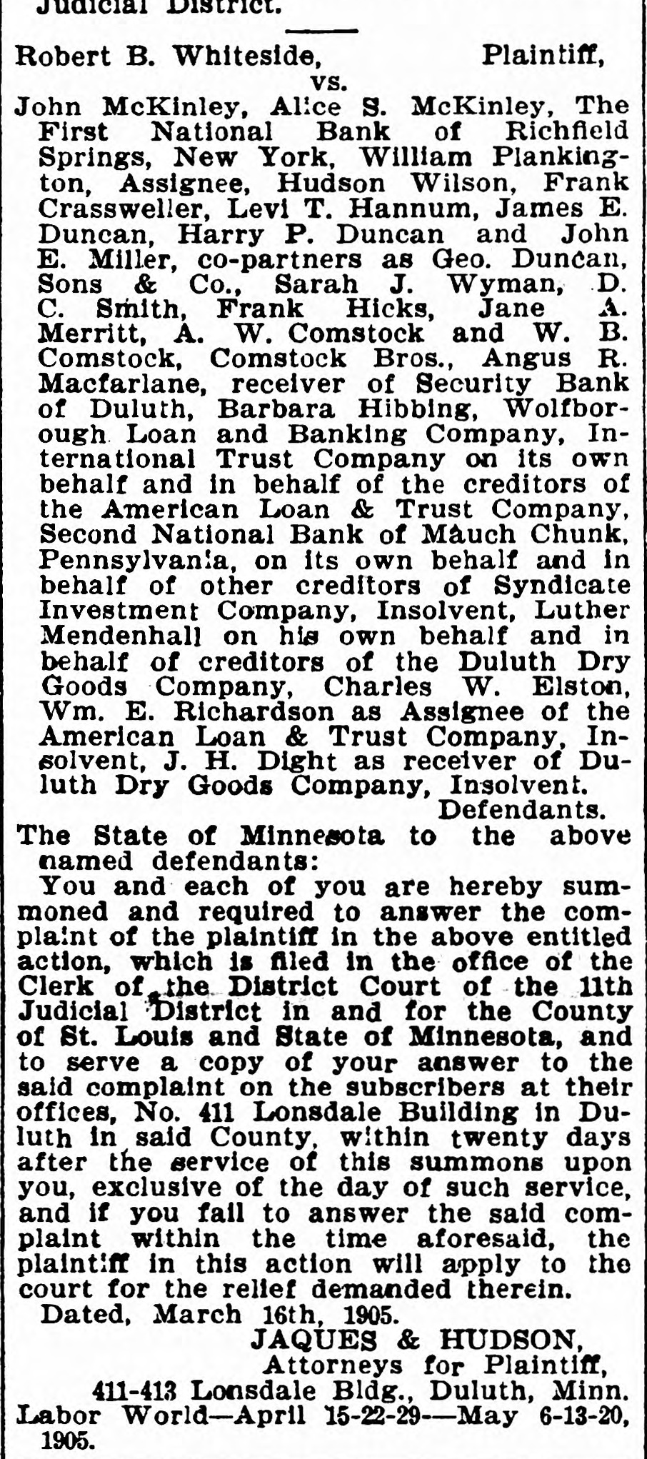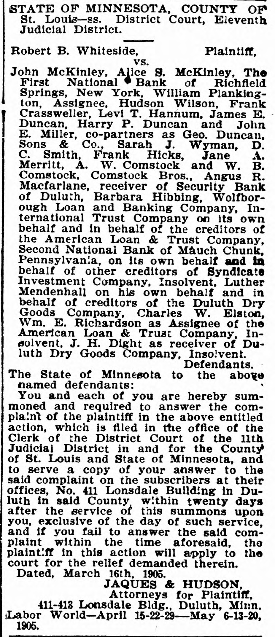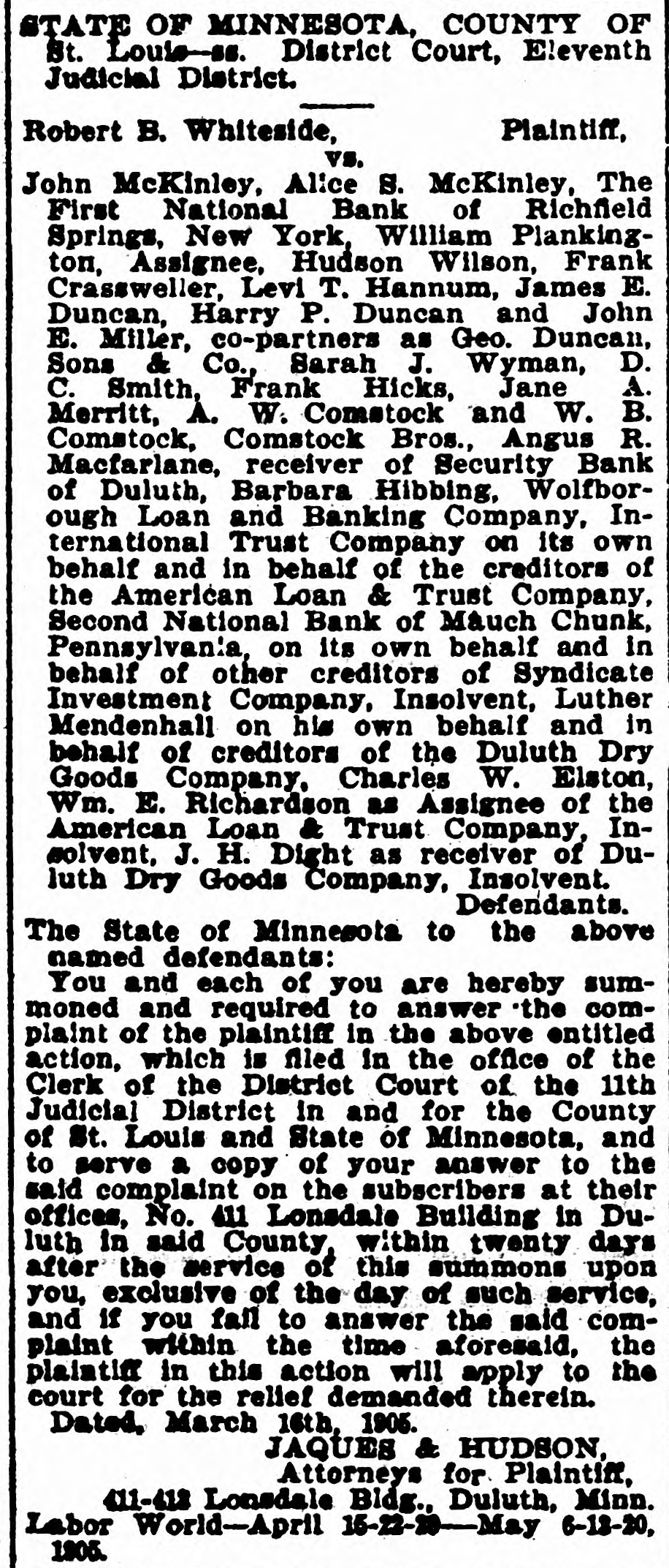 JAQUES & HUDSON, Plaintiff's Attorneys.