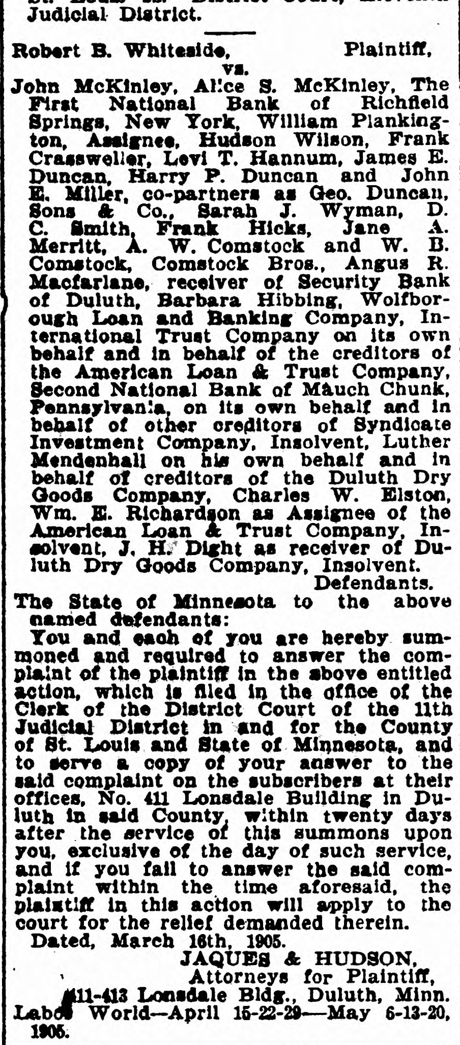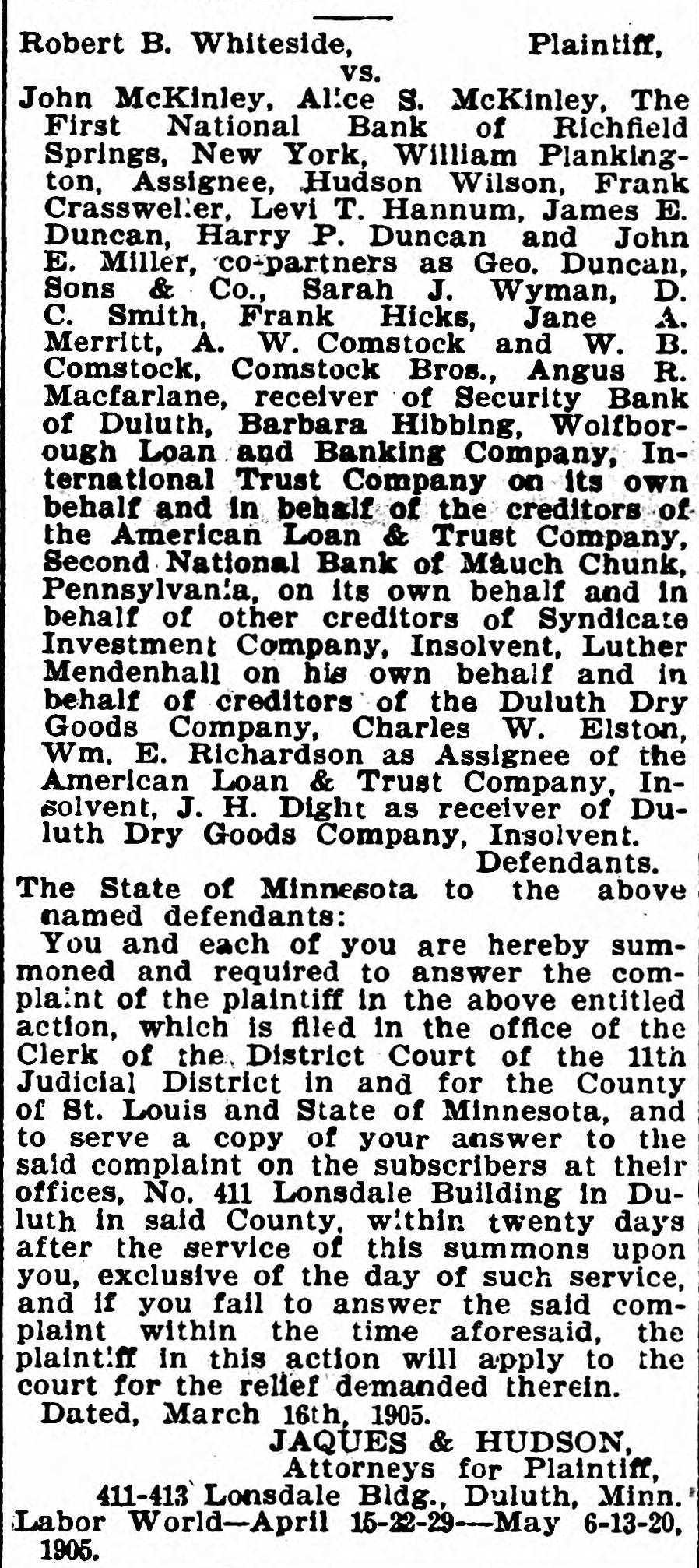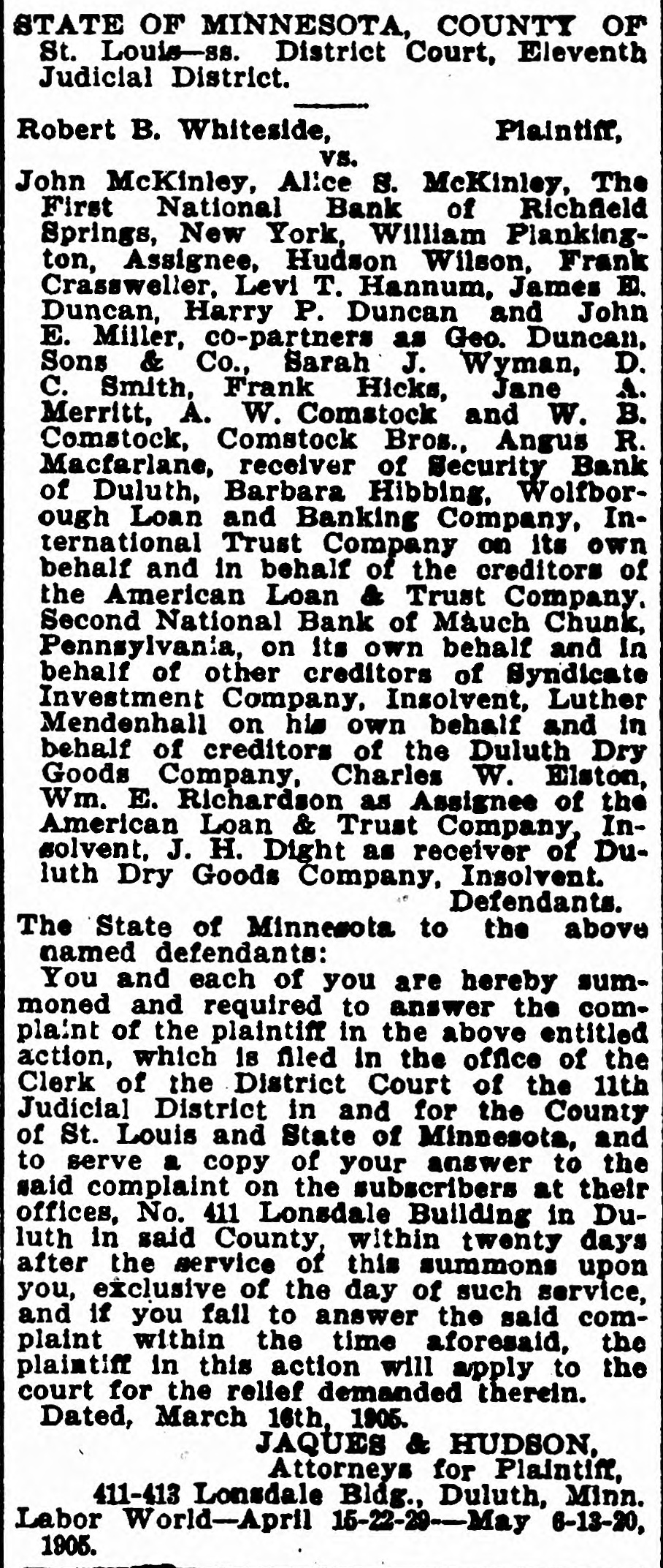 JAQUES & HUDSON, Plaintiff's Attorneys.