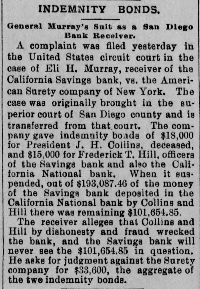 LILIENTHAL OWNS BARSTOW , Judge Ross Decides a Case Against the So. Cal. Ry. Two Other Decisions Rendered in the Federal Courts. The Twenty Acros on Which Earstow is Situated the Basis of a Suit - . A Large Draft in IssueA Bank Case. Roes yesterday in the United States circuit court an Judge handed down Lilienopinion in the case of Jesse W. thal VS. the Southern California Railway company ordering judgment for the plaintiff. The action was upon a 20-acre tract of or attempted to be selected defendant company, land by the selected and is is built. that upon the town of Barstow named Bugbee, A man which predecessor in a interest to the plaintiff, settled upon fractional part of the section which contained 51.55 acres and embracing the 20-acre tract in controversy in July, 1885, and September 12, 1885, filed his declaratory statement in the local land office and paid the fee for filing. He afterwards made final proof and payment and received a certificate of purchase therefor. This was, followed by a patent which was issued March 6, 1890, and the plaintiff derived title from him through various conveyances. Prior to Bugbee's gettlement the California Southern Railroad company filed with the register of the land office 8 map of the etation grounds at Waterman, upon which was indorsed a certificate of the president and affidavit of the chief engineer of the company. Subsequently September 30, 1885, a map showing a portion of the located line of the California Railway company at Waterman Junction was filed in the office of the register and receiver at Los Angeles, which received the approval of the interior department December 31, 1885. The same day the acting secretary of the interior approved the map. The court after discussing the question at considerable length decided that by the terms of the land grant of the railway company no right to ground for etation purposes attaches until the right of way is secured by a compliance on the part of the railway company with the provisions of the act of congress. So far as the evidence showed, the only map then filed by the railway company when the land in question was located was the one filed September 30, 1885. But before it met with the approval of the interior department, and prior to the time it was filed with the register of the land office, Bugbee settled upon the fractional part of section 16, including the 20 acresin dispute, and had filed his declaratory statement therefor. The trouble with the railway company, the court says, was that it did not follow the law, the provisions of which were very plain. The first thing it did was to file with the register a map of the station grounds desired, before it had secured the right of way for its road. Manifeetly, before any right could arise out of such a grant the right of way should be secured, which could be done by a compliance with the provisions of the law conferring it. As the right of way had not been secured at the time the map was filed, such filing initiated no right to the ground. Judgment is therefore ordered for the plaintiff." A LARGE DRAFT IN QUESTION. Judge E. M. Rose, in the United States circuit court yeaterday filed an opinion in the case of P. Flannagan and J. W. Bennett, bankers of Marshfield, Ore., VS. the California National bank of San Diego, a suit to recover the amount of a $6000 draft drawn by a Mr. Baines on the defendant, Graham. By their com. plaint the plaintiffs seek to charge the defendant, the California bank, now ir the hands of a receiver, with the payment of the draft, and a demurrer filed by the receiver, on behalf of the bank, raised the question of the latter's liabilitv. The promise counted on in this case was the promise of Cashier O'Brien of the defendant bank to pay Baines' draft on Graham, who was a customer of the bank and an anticipated depositor, and the court save that the question for decision is whether such a promise of the cashier of a national bank is binding upon the bank. After quoting numerous authorities the court sustains the demurrer. A BANK CASE. Judge ROBS also gives a decision, in accordance with an opinion filed, in the case of Eli H. Murray, receiver of the California Savings bank, ve. Frederick N. of was a suit the receiver National Pauley, by bank receiver San of Diego. of the the California insolvent It reNaa tional a of ceiver California bank, of the Savinga based insolvent upon bank against California certificate the deposit of the last named bank iesned to