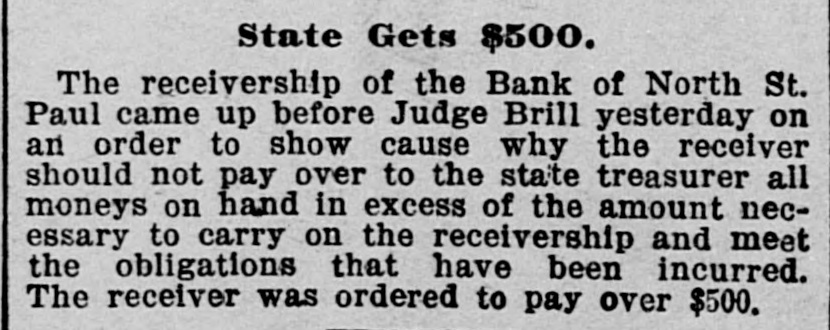 The Farmers and Merchants State bank of Minneapolis and the American Ex-change bank have been sued and the state is not sanguine of recovering very much, if any, of the balances due from them. The State bank of Minneapolis owes $58,144.76 and it is not believed by the state treasurer that this will be re-covered. As to the rest of the banks the state treasurer says there is no doubt that the money will all be paid to the state, with interest. The banks now ow-ing the state which will pay are the Co-lumbia National bank of Minneapolis $1,616.80, balance due; Bank of North St Paul, $2,437.36, balance due; Marine Na-tional bank of Duluth, $2,053.98, balance due; Filimore County bank of Preston, $7,578.89 due.