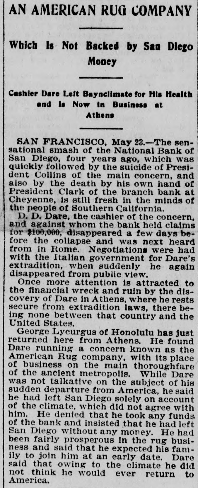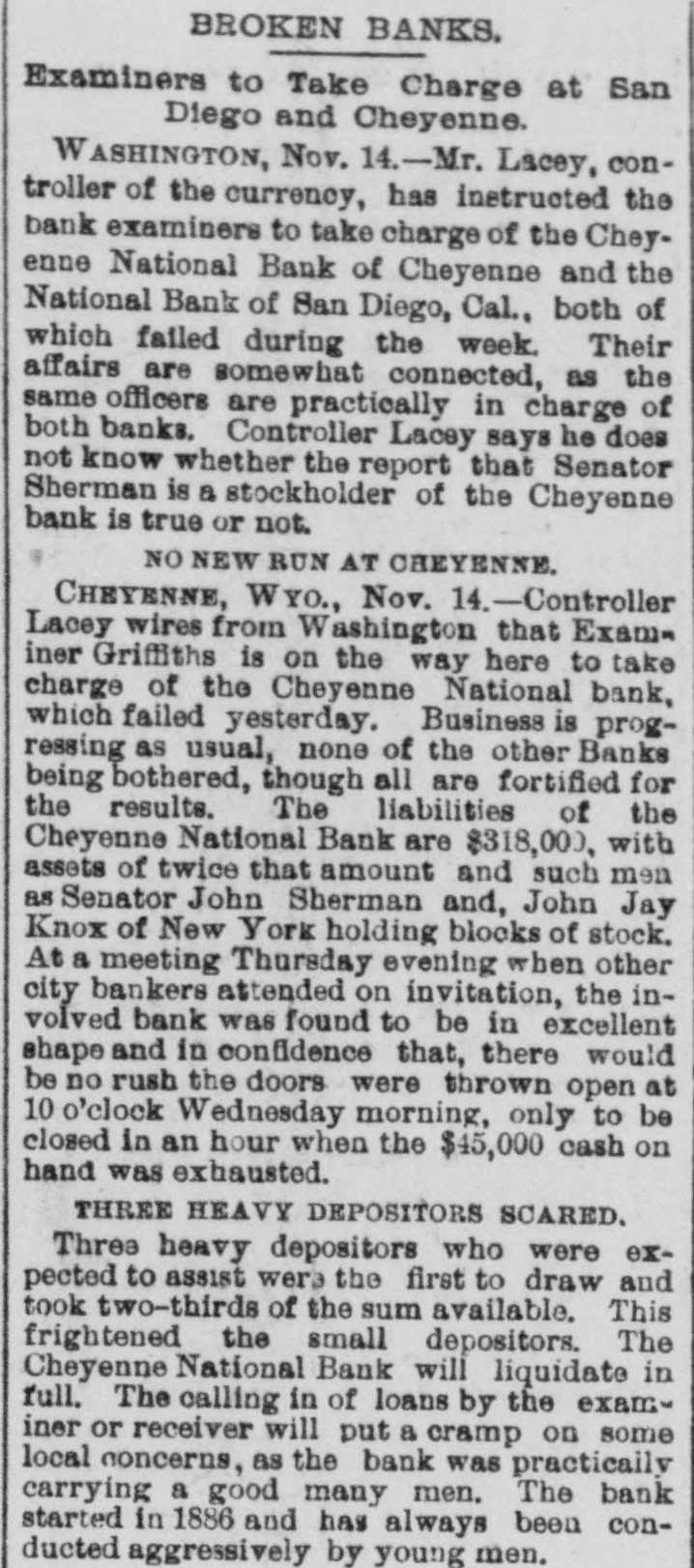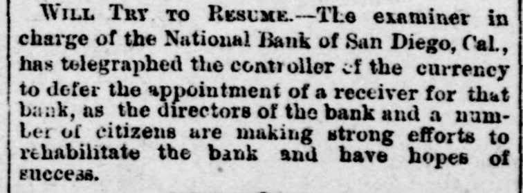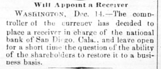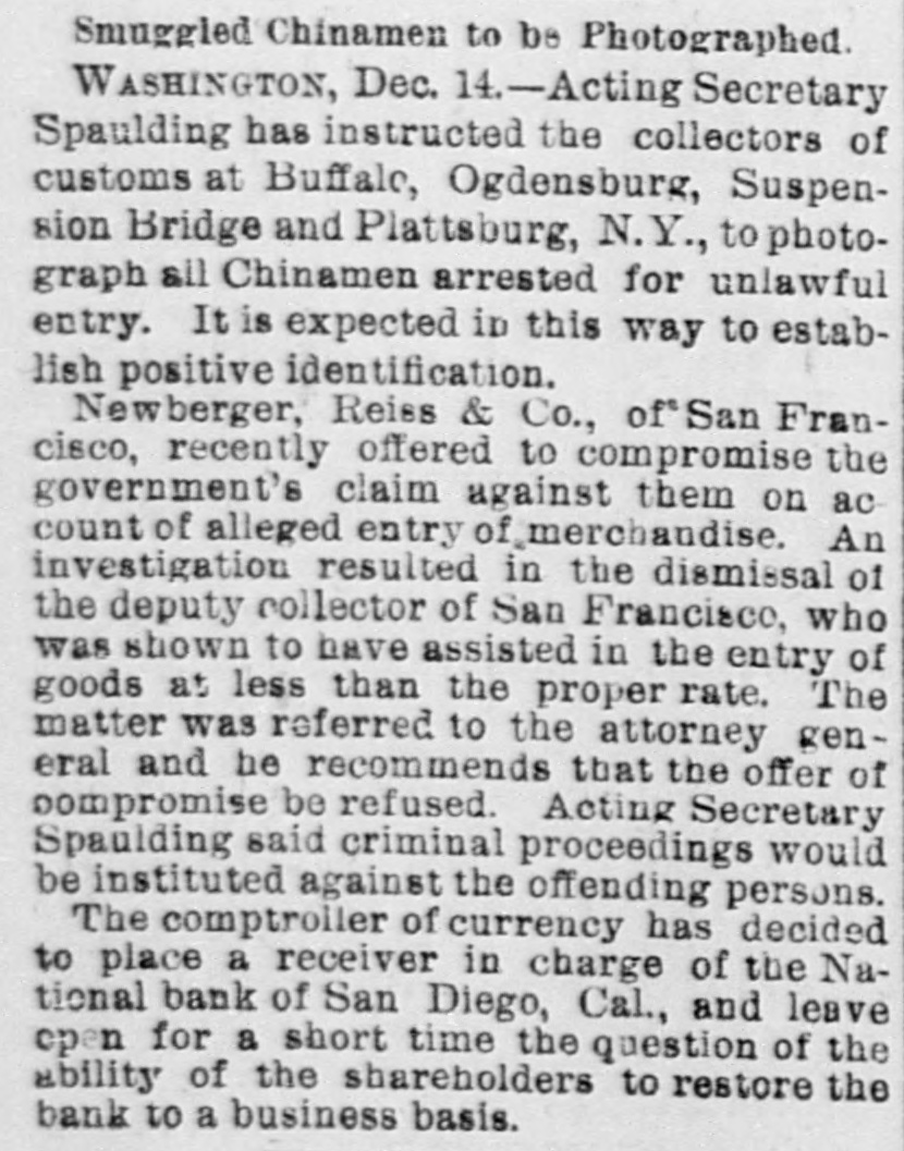 (Situations) Page Page WANTED (Misceilaneous) WINTER RESORTS Page 10 GOVERNMENT RECEIPTS TODAY.-Internal revenue, $114,867; customs, $311,349. MR. A. J. HALFORD has been appointed to a position on the Washington staff of the United Press. PAID OUT FOR PENSIONS.-The Treasury Department 80 far this month has paid out $7,000,000 on account of pensions. THE REVENUE CUTTER BEAR, which has been cruising near the seal islands, has returned to San Francisco for the winter. BONDS REDEEMED-The amount of 41/2 per cent bonds redeemed yesterday was $20,100, making the total redemption to date $22,228,450, and leaving outstanding $3,276,250. ADJUTANT GENERAL KELTON, who has been seriously ill, has recovered sufficiently to justify the belief that he will be able to resume his official duties in a few days. MOVEMENTS OF NAVAL VESSELS.-A cablegram received at the Navy Department announces the arrival of the Chicago and Bennington at St. Thomas, West Indies, today on their way to the South Atlantic station. SECRETARY FOSTER has improved 80 much that Dr. Hamilton, who has attended him throughout his illness, left the city today for Chicago to resume his official duties there. Dr. G. L. Magruder will continue in the case. A NATIONAL BANK IN TROUBLE-The controller of the currency has decided to place a receiver in charge of the National Bank of San Diego, Cal., and to leave open for a short time longer the question of the ability of the shareholders to restore the bank to a business basis. COLLECTOR WARMCASTLE'S CASE.-The case of Collector Warmcastle of Pittsburg, charged with official misconduct, has been submitted to the President and it is understood be will act on it in a few days. The prevailing impression is that a change in the office will be made. THESE Saw THE PRESIDENT.-The President's callers today included Senators Barbour, Proctor, Washburne, Casey and Dawes, Representatives McKinney, Shouk, Taylor, Houk, Pickler and Walker, ex-Senator Blair, W. A. Abbott and S. V. Stillings of Boston and Hon. Thos. E. Miller and Collector Smalls of South Carolina with a delegation. CHINESE TO BE PHOTOGBAPHED.-Acting on the advice of the United States district attorney at Buffaio Acting Secretary Spaulding today instructed the collectors of customs at Buffalo, Ogdensburg, Suspension Bridge and Plattsburgh, N. Y., to cause photographs to be taken of all Chinamen arrested for unlawful entry into the United States from Canada. It t is expected in this way to establish a positive identilication of all Chinamen who return to this country after having once been deported to Canada as the country "whence they came." DISTRICT MILITIA OFFICERS.-The President today commissioned officers of the militia of the District of Columbia as follows: Daniel Macauley, to be inspector general with the rank of major; Harry B. Cilley, adjutant second regiment with rank of captain; George E. Pickett, first lieutenant company C, fourth battalion; Anton Stephan, first lieutenant company D, fourth battalion: Robert T. Smith, second lieutenant company A, second battalion; Frank R. Underwood. second lieutenant company C. fourth battalion, and D. L. Richmond, second lieutenant company D, fourth battalion. DISTRICT PATENTS.-Patents have been issued to residents of the District as follows: Harrison B. Brown, assignor of one-half to W. W. Dudley and F. L. Browne, lemon juice extractor; Edwin S. Holmes. jr., printing surface; William E. Schneider, two patents, assignor in both to M. Earle, trustee, Philadelphia, shutter for photographic apparatus and tripod; Andrew B. Schofield, assignor of two-fifths to J. Covert and A. M. Dewey. plate printing press; Nathan B. Clark and F. B. King, steam boiler; George R. Wilson, jr., assignor to John W. Ross, trustee, projectile with frangible cap; Theodore R. Timby. assignor to Natural Heating and Ventilating Company, Washington, apparatus for heating, cooling and ventilating. PERSONAL-H. B. Hayes of Richmond, Va., J. A. Beckwith of Ohio, H. B. Mooney of New York and S. Howard Roe of New York are at Willard's W. Reddall of New York, Jos. Marshall of West Virginia, W. H. Strickland of