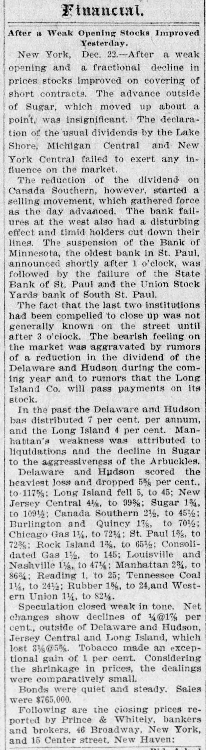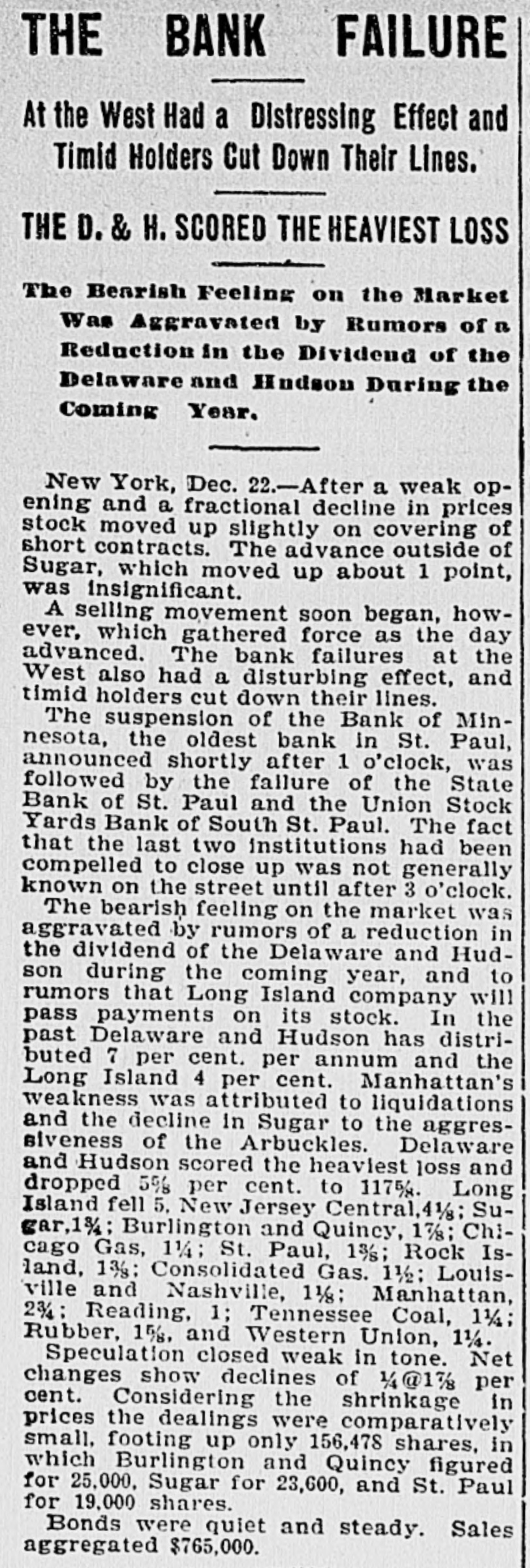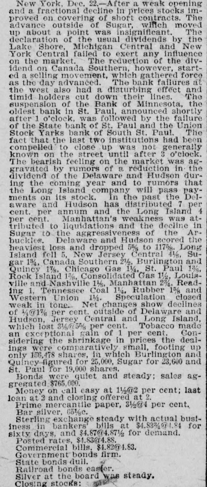 idea-that build a house you should first put up the parlors and receptions rooms, and afterwards the foundation, the cellar and the kitchen? Is the gold-standard theory of adopting a system of finances that the bankers and monied men want, regardless of what the PRODUCERS, the LABORERS-the foundation of all national prosperity-needs, thus far proving a good thing for the country? Here is a record of failures for the 15 days ending January 4, 1897: Dec. 21-National Bank of Illinois, Chicago. Dec. 21-Roseland Bank, Chicago. Dec. 21-E.S Dreyer & Co. Chicago. Dec. 21 -Wusmansdorff & Heinemann, Chicago. Dec. 22-Bank of Minnesota. St. Paul. Dec. 22-State Bank of St. Paul. Dec. 22-Union Stock Yards Bank, St. Paul. Dec. 23-Chicago Bank, West Superior, Wis. Dec. 23-Bank of West Superior, West Superior, Wis, Dec. 23-American Banking and Trust Co., Auburn, Me. Dec. 28-Dime Savings Bank, Chicago. Dec. 28--Atlas National Bank, Chicago. Dec. 28-Scandia Bank, Minneapolis. Dec. 28-Bank of Superior, Supe rior, Wis. Dec. 29-Columbia Bank, Minneapolis. Dec. 29--Washington Bank, Min8 neapolis. i Dec.29--Commercial National Bank, D Va. Dec. 30-Northern Trust Company, r Minneapolis. Dec. 30 Bankers' Exchange Bank, 1 Minneapolis. . Dec. 30 Northwestern Loan and e Building Association, Minneapolis. Dec. 30 Commercial Bank, Selma, Al. Dec. 30 Farmers' Trust Company, Sioux City, Iowa, y t Jan. 4 Germania Bank, St. Paul. y Jan, 4 Allemania Bank, St. Paul. r Jan. 4 West Side Bank, St. Paul. it Jan. 4 Minnesota State Savings e Bank, St, Paul. Jan. 4 Citizens' National Bank, r. Fargo, N. D. d Jan. 4 City Bank, Nora Springs, If Iowa, a Total amount reported, $21,354,779 c OTHER HOUSES DRAGGED DOWN BY THE e CRASH, of Dec, 22 Angus & Giudele, contract rors, Chicago. of Dec. 23 American Brewing and Y, Malting Co., Chicago, Dec. 23 George A. Weiss Malting Co., Chicago. Dec. 23 George A. Weiss, Chicago r. Dec. 28 Excelsior Machinery an t, Belting Co., Chicago, st Dec. 29 Western Paper Bag Co. iBatavia, III. a Dec. 29 Appleton Manufacturing be Co., Van Nortwick, III, ch Jan. 4 Snow & Earl Co., druggist ct supplies, Providence, R. I IJan. 4 L. W. Alet & Co., wholesal ojewelers, Chicago, Ill. SUICIDES CAUSED BY THE BANK FAILURES if Otto Wasmandorff, head of th " banking firm of Wasmandorff & Heine of mann, of Chicago, shot himself in tha of city. Suicide due to worry over th I's failure of his firm, which occurred o December 21. ry George A. Wilkins, vice president o the suspended Commercial Bank, o ds Selma, Ala., shot himself on Decembe 31, in front of the altar of St. Paul'