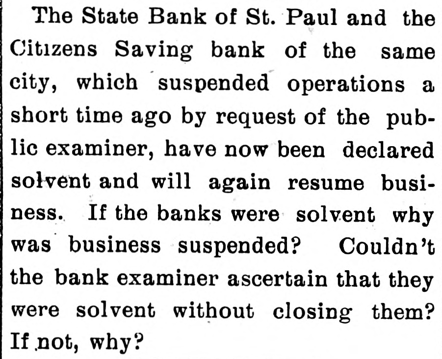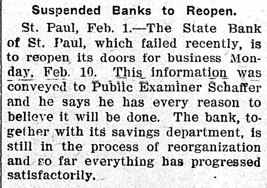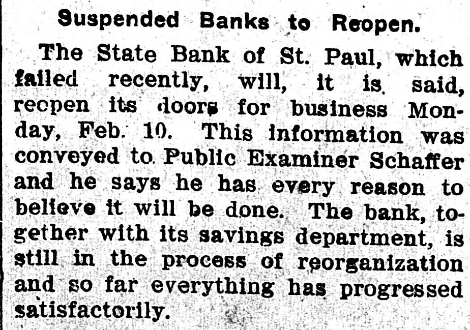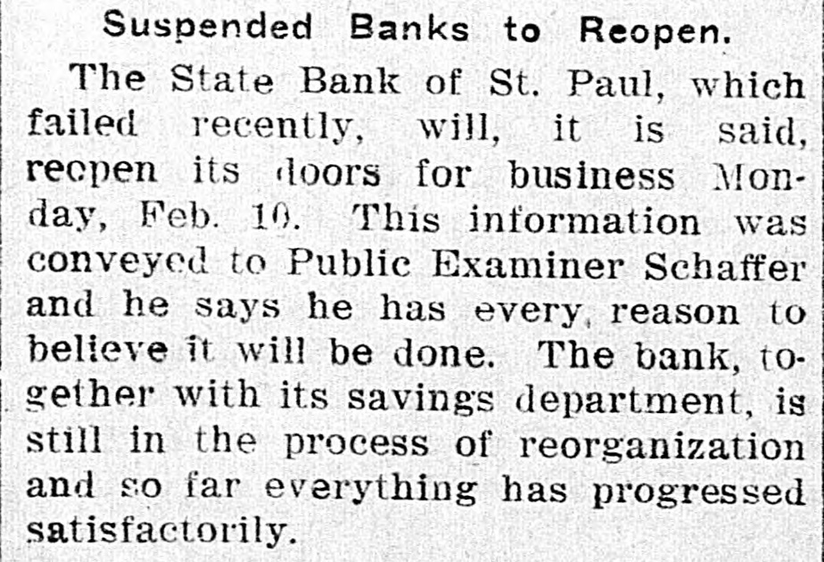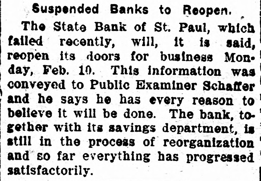 FINANCIAL AND INDUSTRIAL The reduction of working hours of Union Pacific shopmen is to be followed with a reduction of working days from six to five a week. The Omaha + World-Herald quotes Vice President Mohler as charging the reduction to "President Roosevelt's mania for 'reform'' and indicating that his company would work with a reduced force so long as the president's activity against corporations continues. Comptroller of the Currency Ridgely has ordered the National Bank of North America of New York city closed for liquidation and appointed Charles Hanna, national bank examiner, as receiver. The bank had deposits of over $19,000,000 on Aug. 22 last, but heavy withdrawals reduced this sum to about $6,000,000 on Dec. 3, the date of the last report. The Traders and Mechanics' bank of Pittsburg, a state institution, has been closed by the state bank examiners. The Treasury Trust company, a subsidiary, occupying the same building, also closed, but voluntarily, it is said. Because of a falling off in street car travel, due to business depression, the Philadelphia Rapid Transit company has withdrawn 100 cars from service and within the next few days will take off twenty-five to forty more. Figures prepared for one of the large railroad companies show that there are 320,000 idle freight cars in the United States and about 8,000 locomotives laid up because of the falling off in traffic. Dispatches to Dun's Trade Review indicate that trade increases gradually, but progress is still slow. The financial improvement is still the best feature of the situation. The State Bank of St. Paul and the Citizens' Saving bank of St. Paul have closed their doors. It is believed depositors will be paid in full. The Capitol State Bank of Idaho at Boise has suspended. The bank had deposits of $1,076,722.